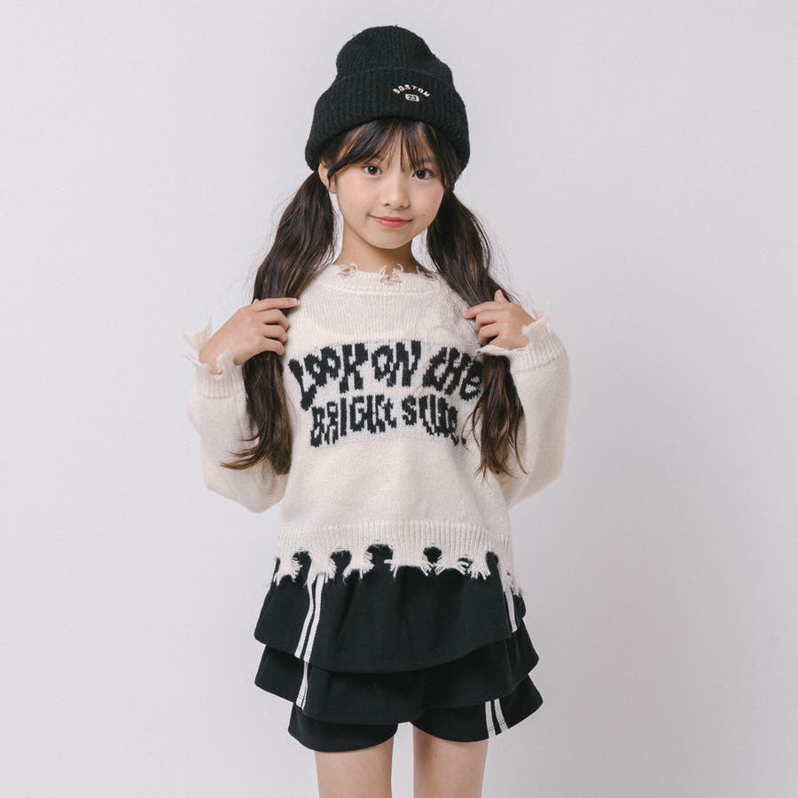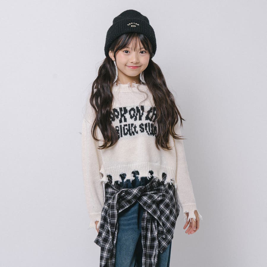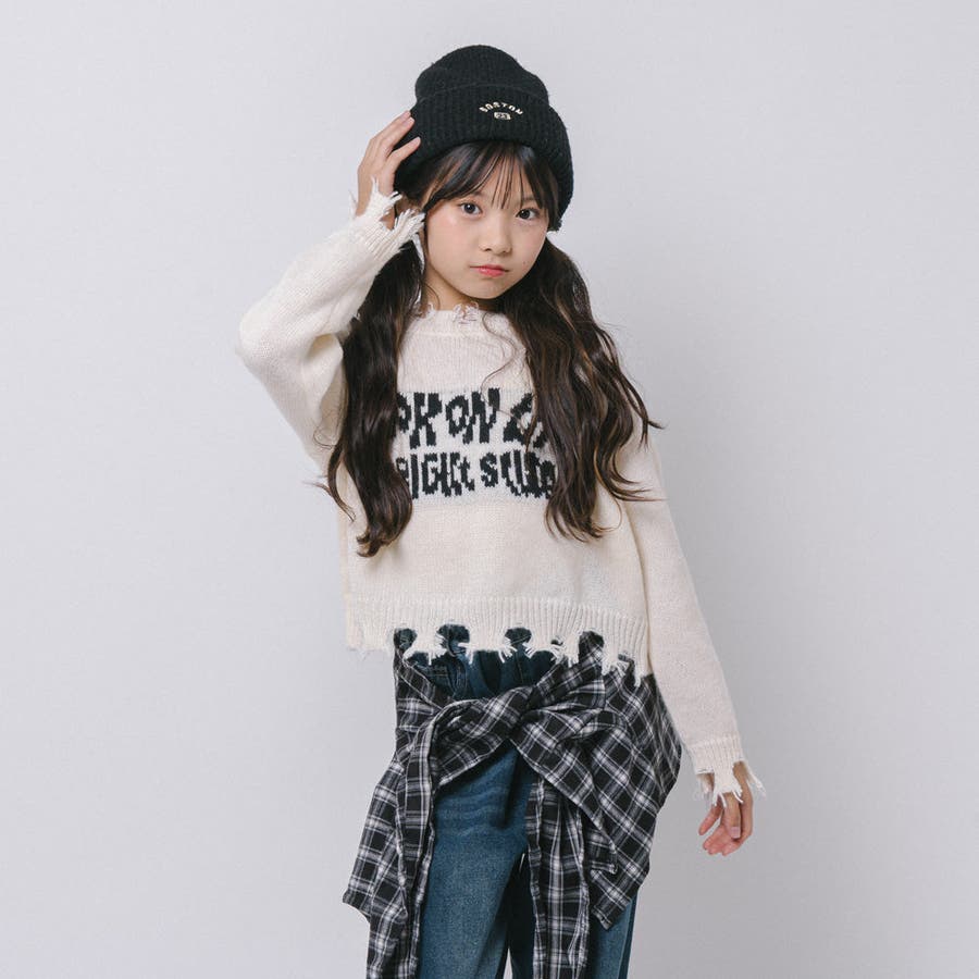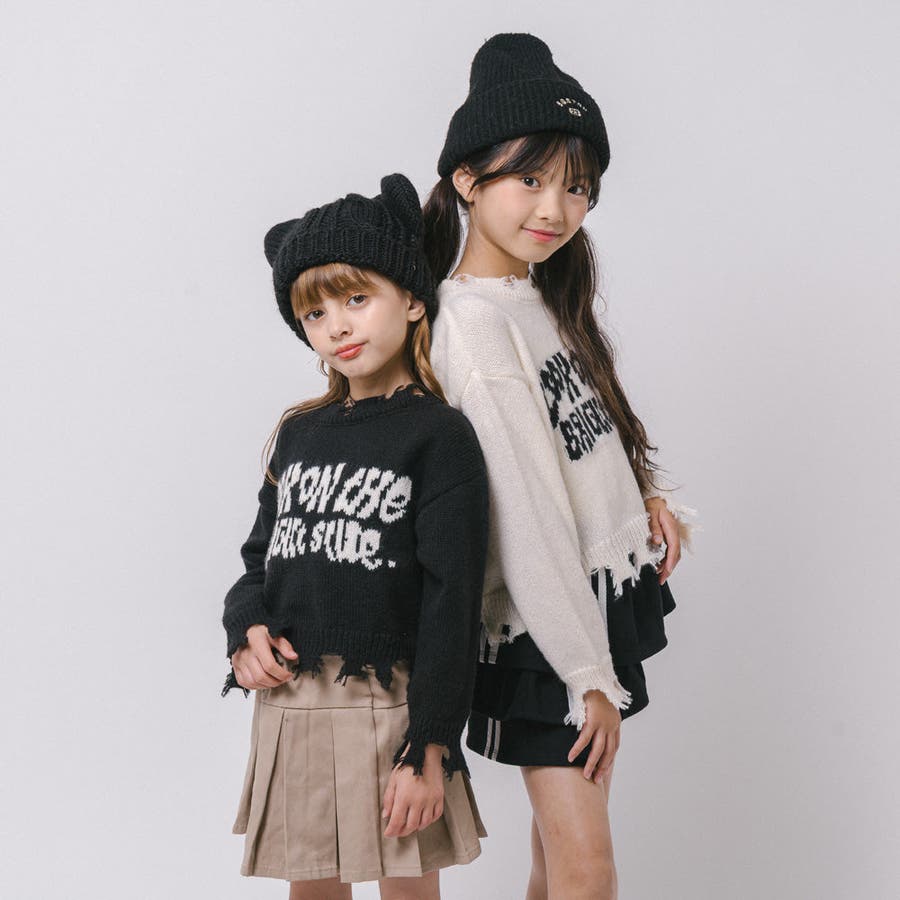 【軽量なのに暖かい"かるポカ"素材】フロントロゴダメージニット