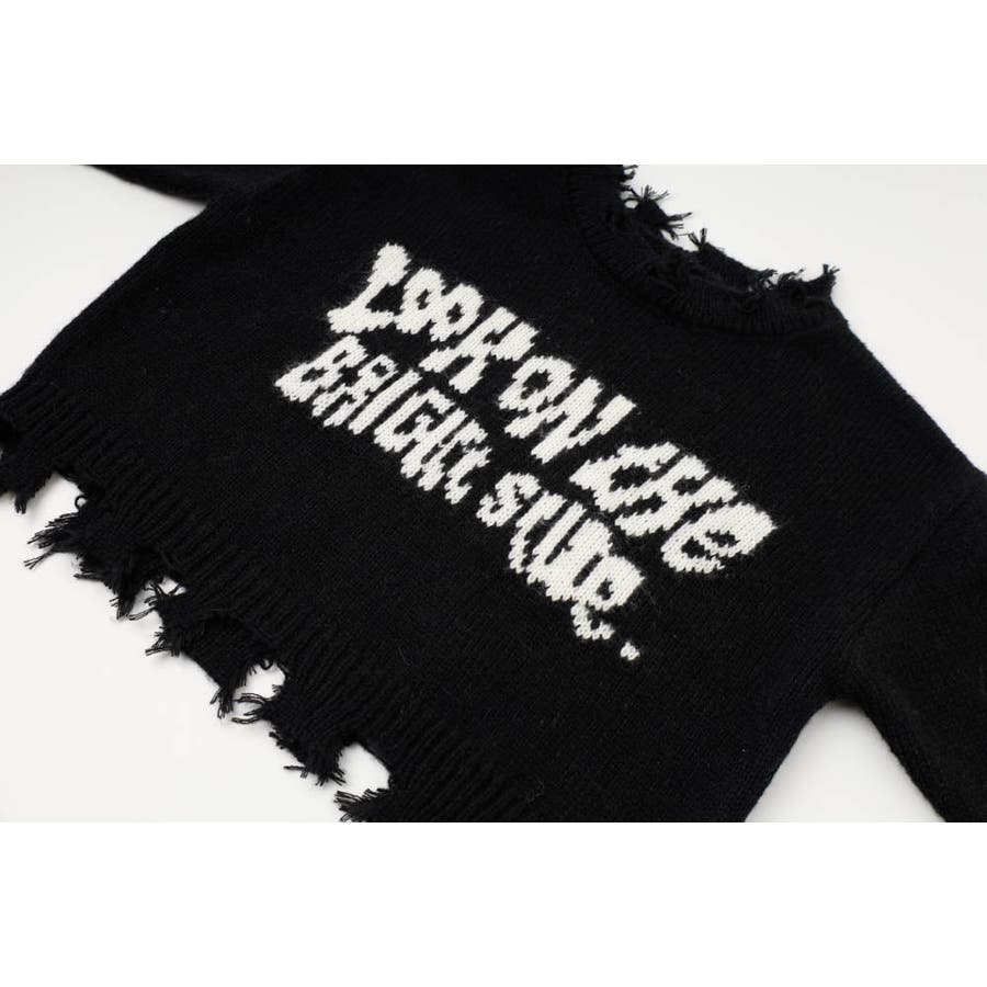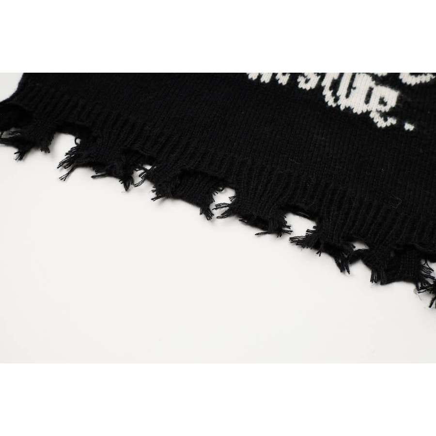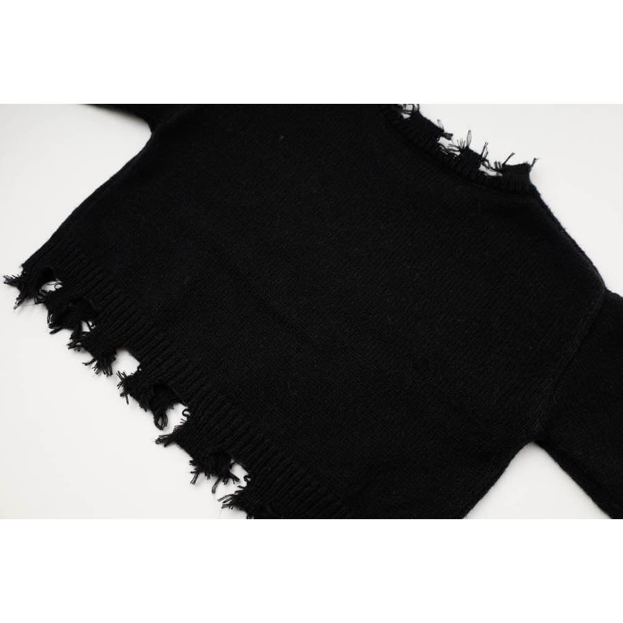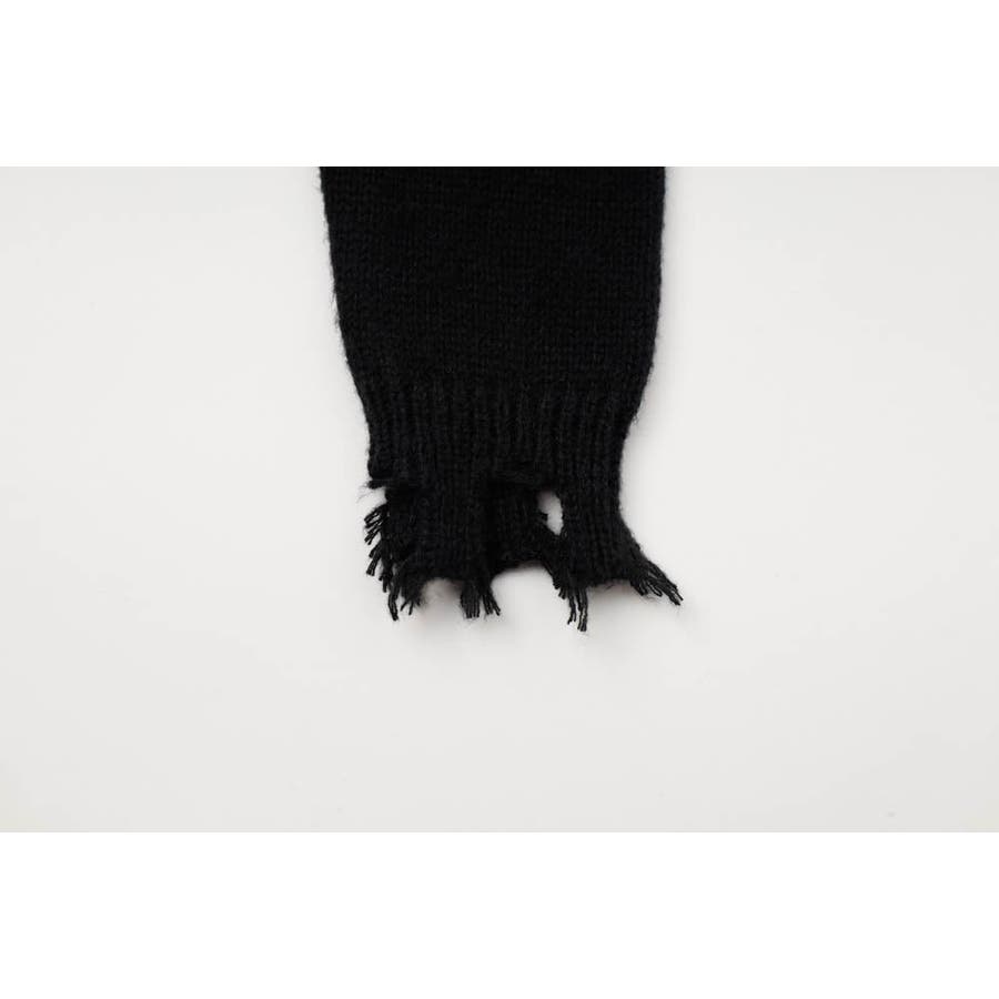 フリンジのクラッシュ加工が目を惹く、エッジの効いたモードニット。