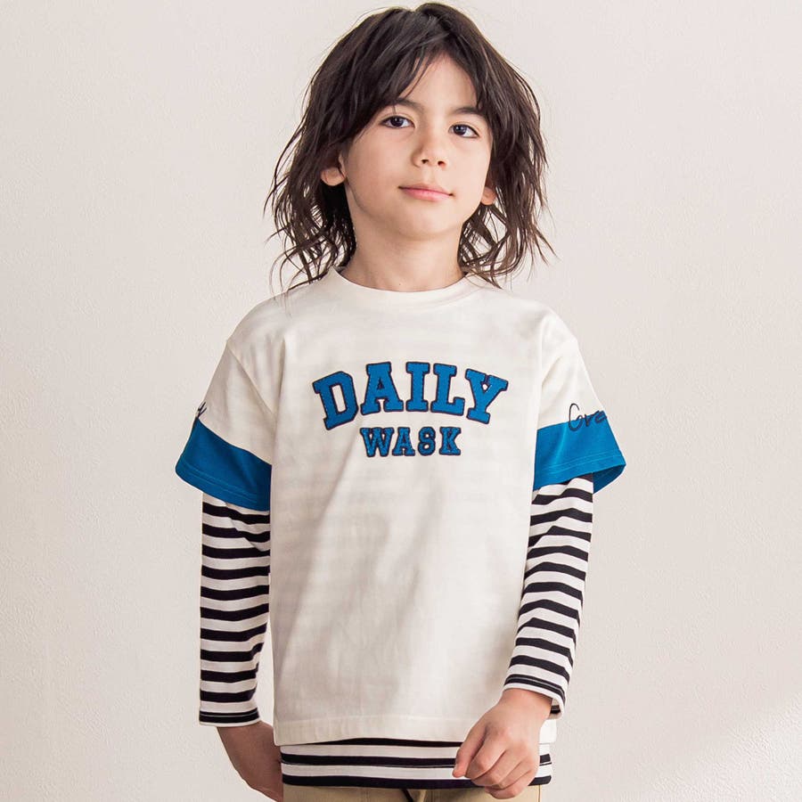 ロゴパッチTシャツ+ボーダーロンT セット(100~160cm)