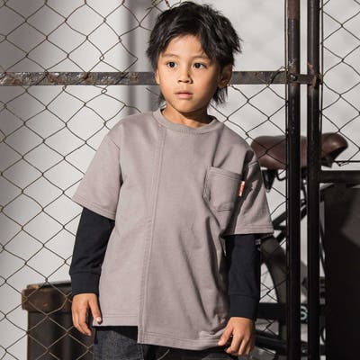 アシンメトリー重ね着風BIGミニ裏毛&ロングTシャツセット(110~160cm)
