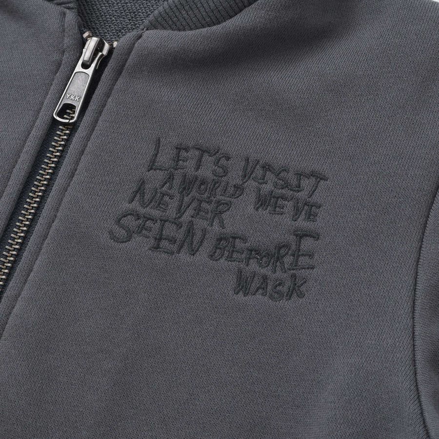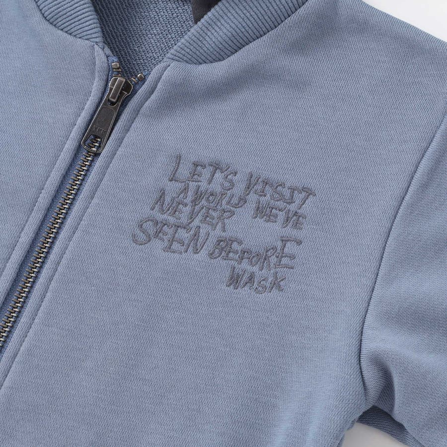 くすみブルー(ブルーグレー)とグレー(スミクロ)のカラーリングが、レトロなムード漂うヴィンテージ感のある一着。