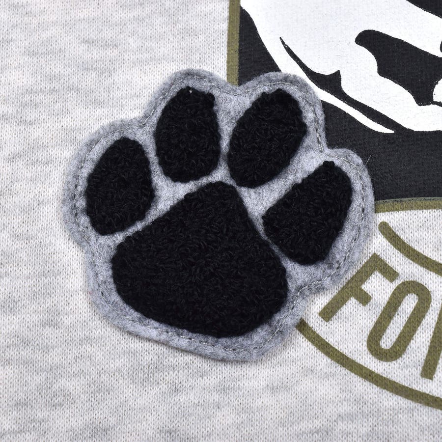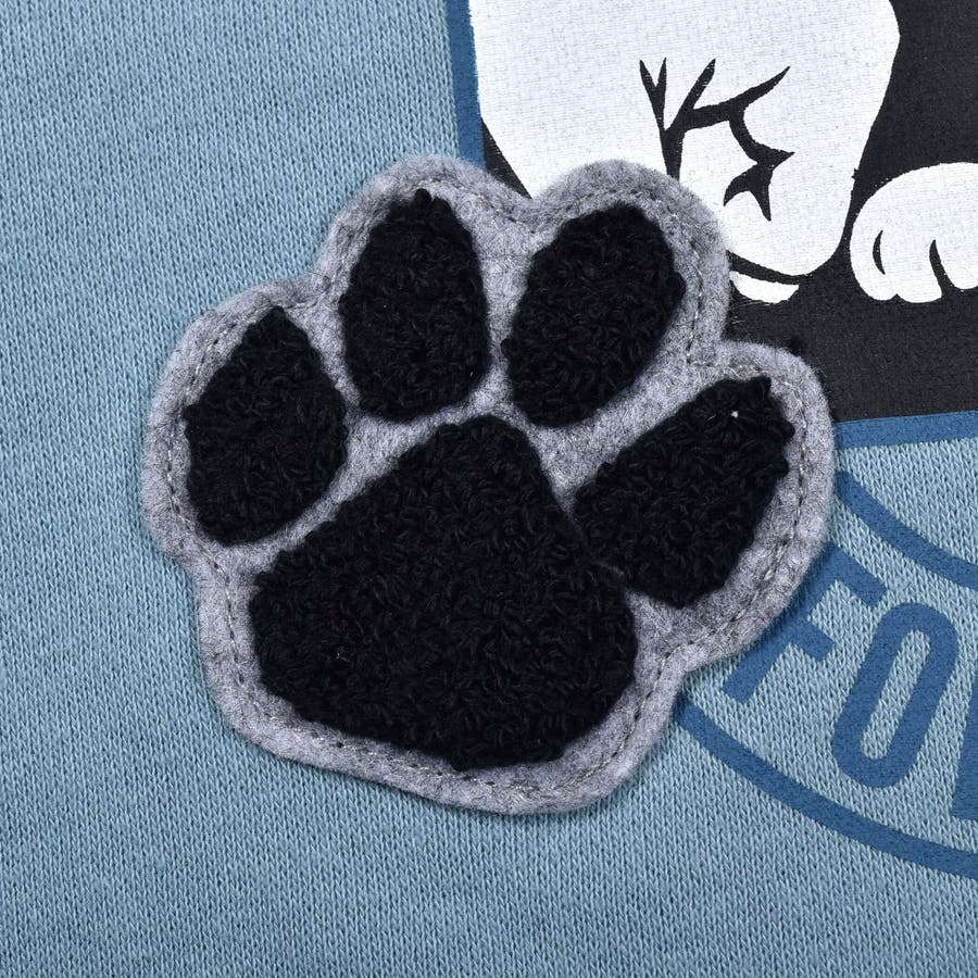 足跡を模したモシャモシャとした感触のサガラワッペンが特徴的な一着。