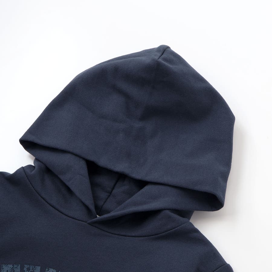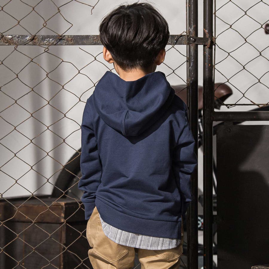 男の子が着ると一気にストリート感が増し、デイリーにもお出かけにもぴったりな万能フーディです。