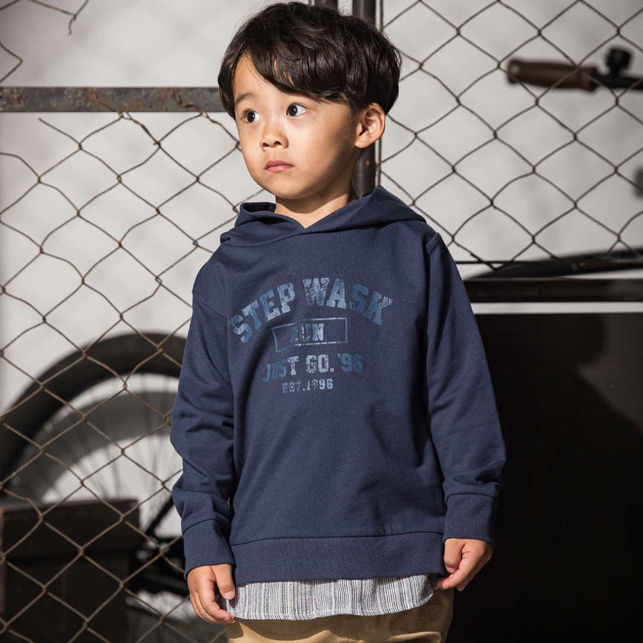 シャツレイヤードカレッジロゴフーディ(110~160cm)
