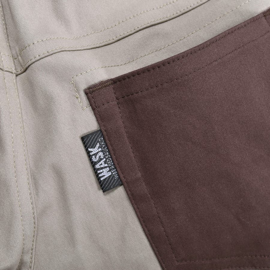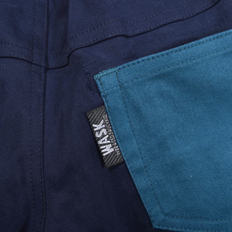 WASKで人気の細身で綺麗なシルエットを保ちつつ、パッチワーク風のデザインで程よくカジュアルダウンさせたアイテムに仕上げました。