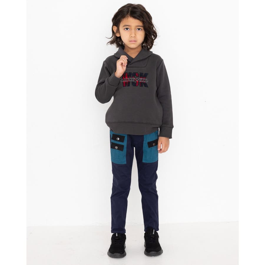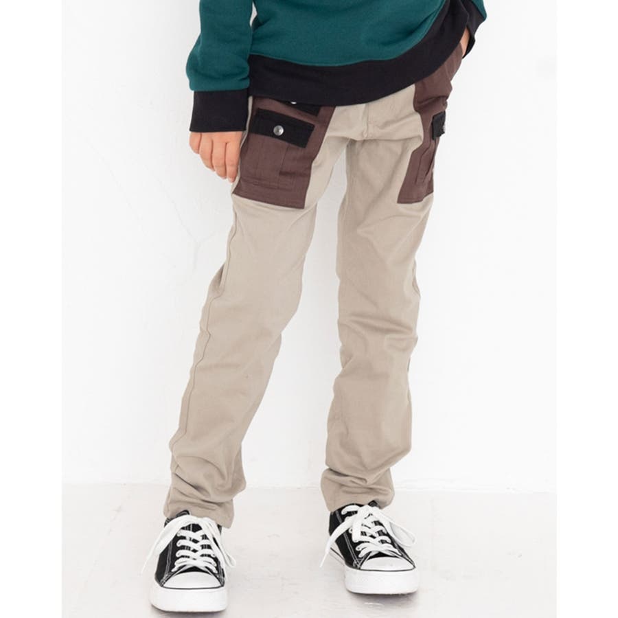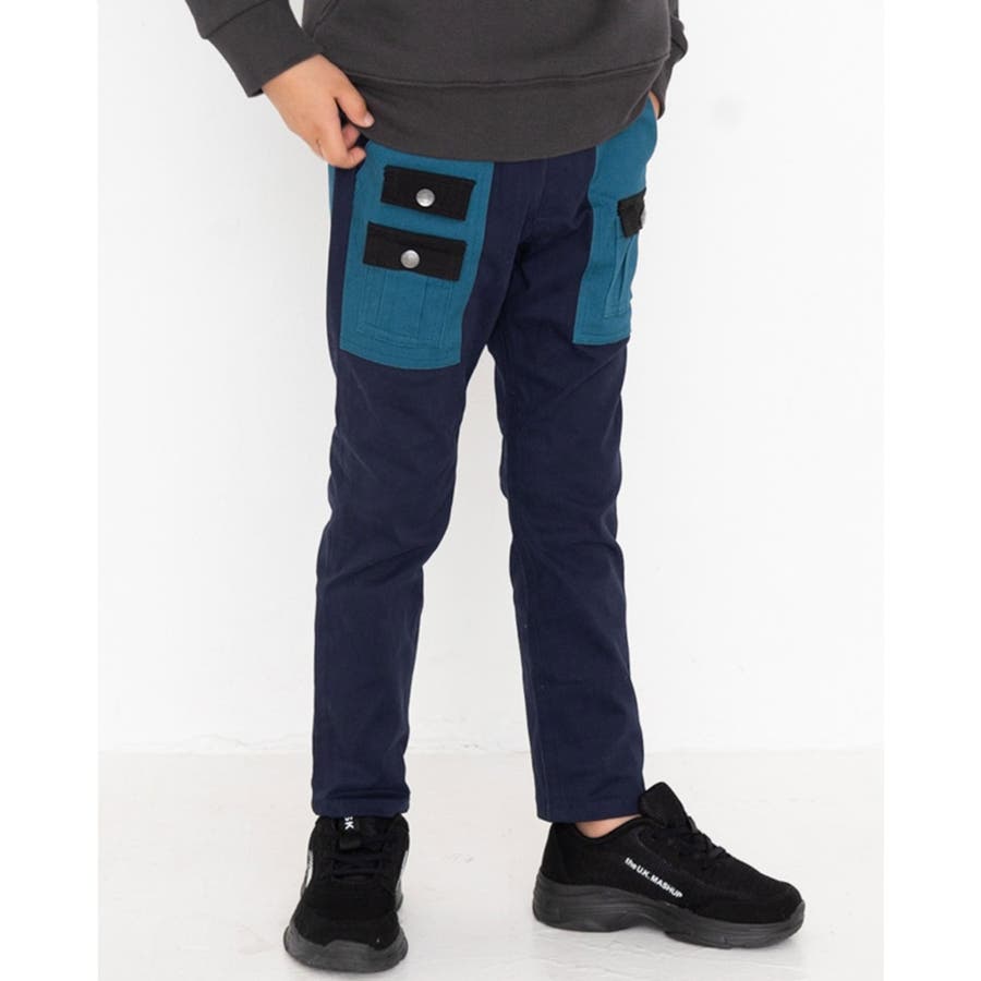 ポケット 配色 サテン スキニー ロング パンツ (100~160cm)