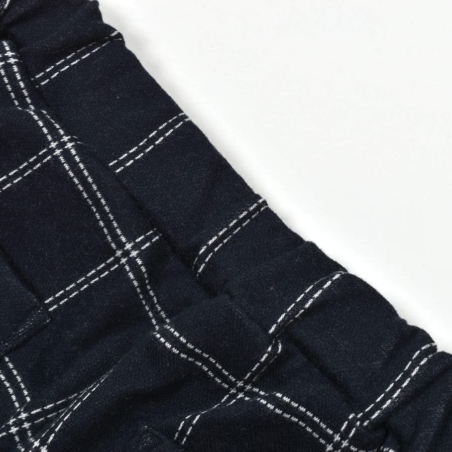カラーはネービー系チェックでの1カラー展開で、ラフなアイテムながらも合わせ方により綺麗見えも叶うお洒落なカラーデザイン。