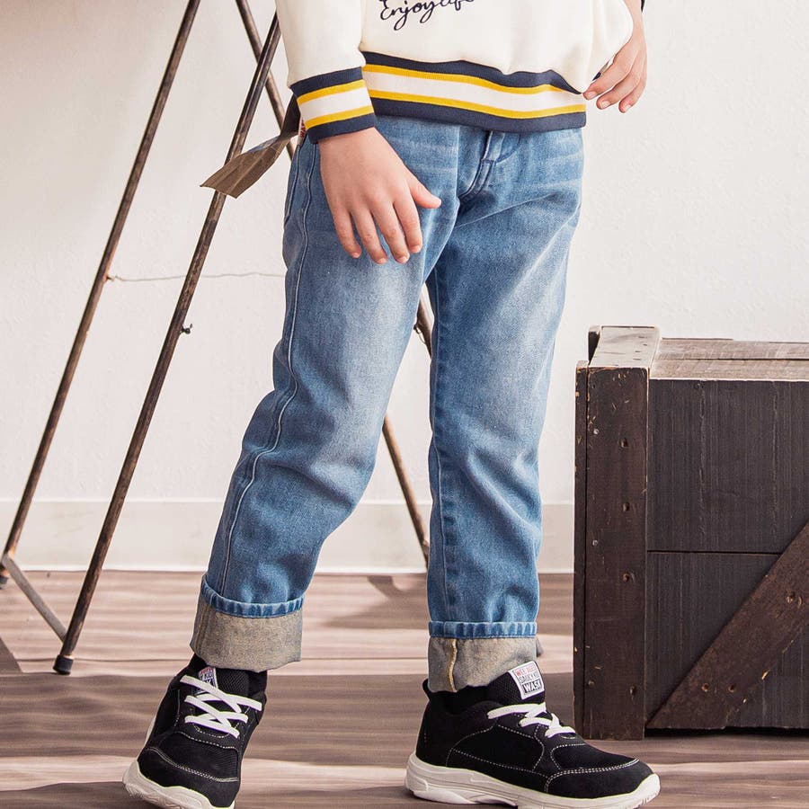 横糸カラーデニムを使用しているので、裾を折り返すとイエローカラーが映えるかっこいい1本です。
