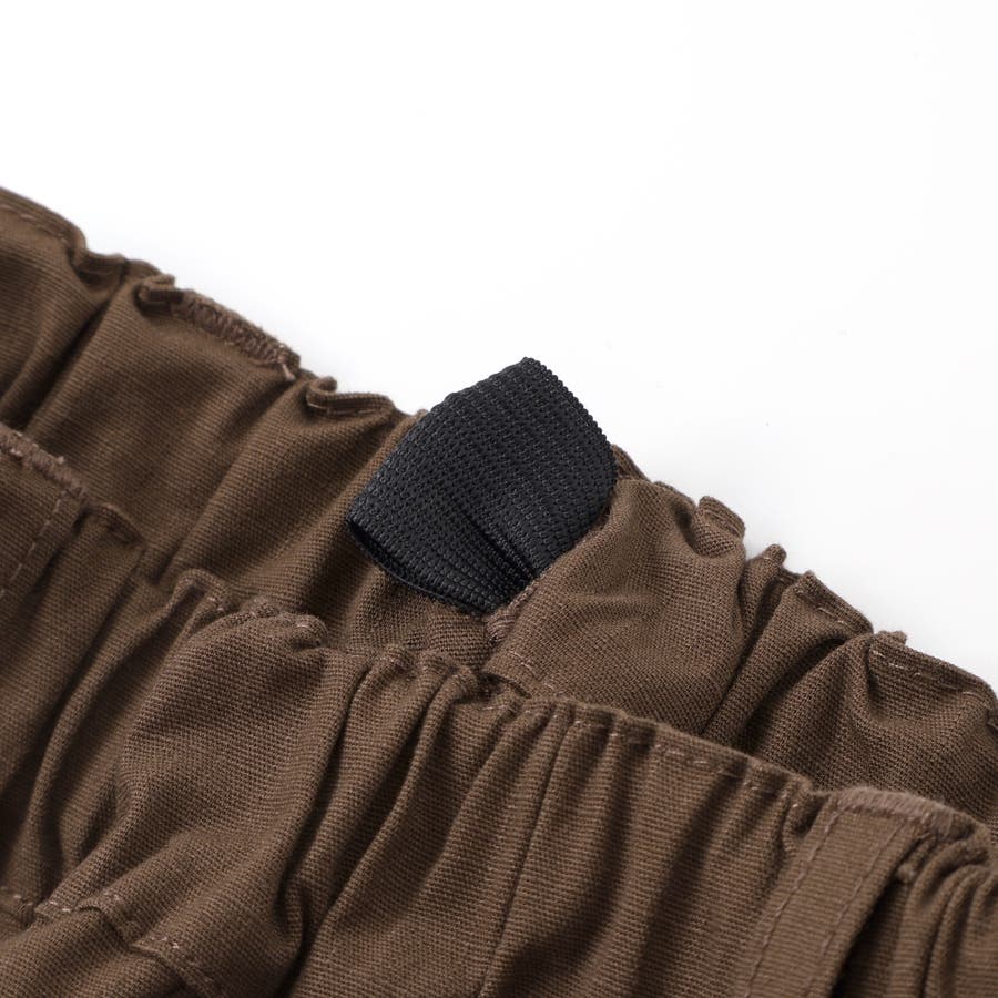 コットンリップストップ素材は、丈夫でやわらかく、ストレッチも効いているから動きやすさ抜群。