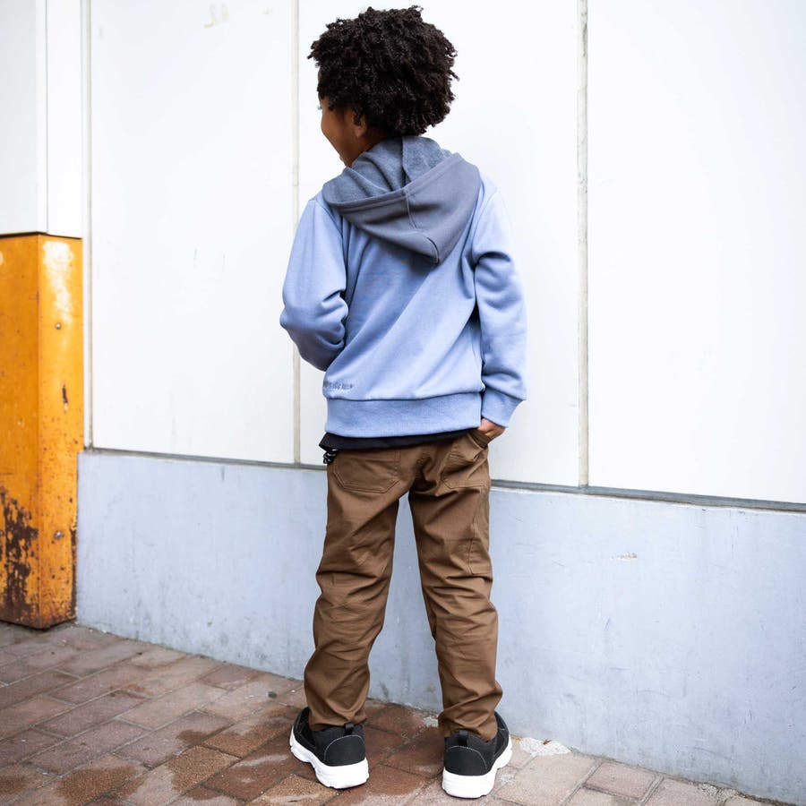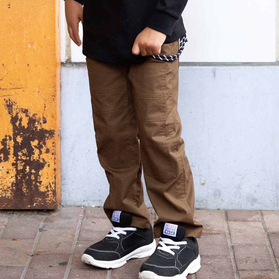 ワークテイストなダブルニー仕様で、元気いっぱい遊ぶ男の子にぴったりなワイドシルエット。