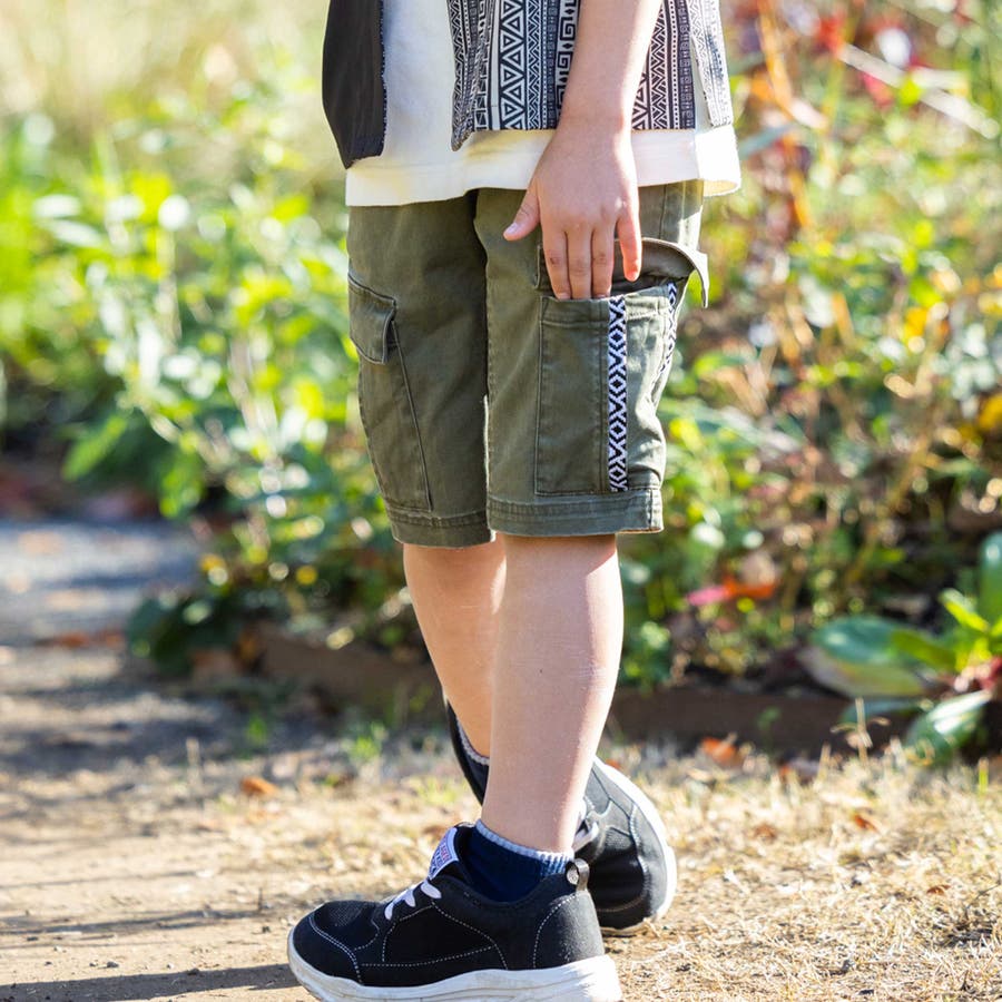 【お揃い】5 5分丈柄テープポケットクライマーツイルパンツ(100~160cm)