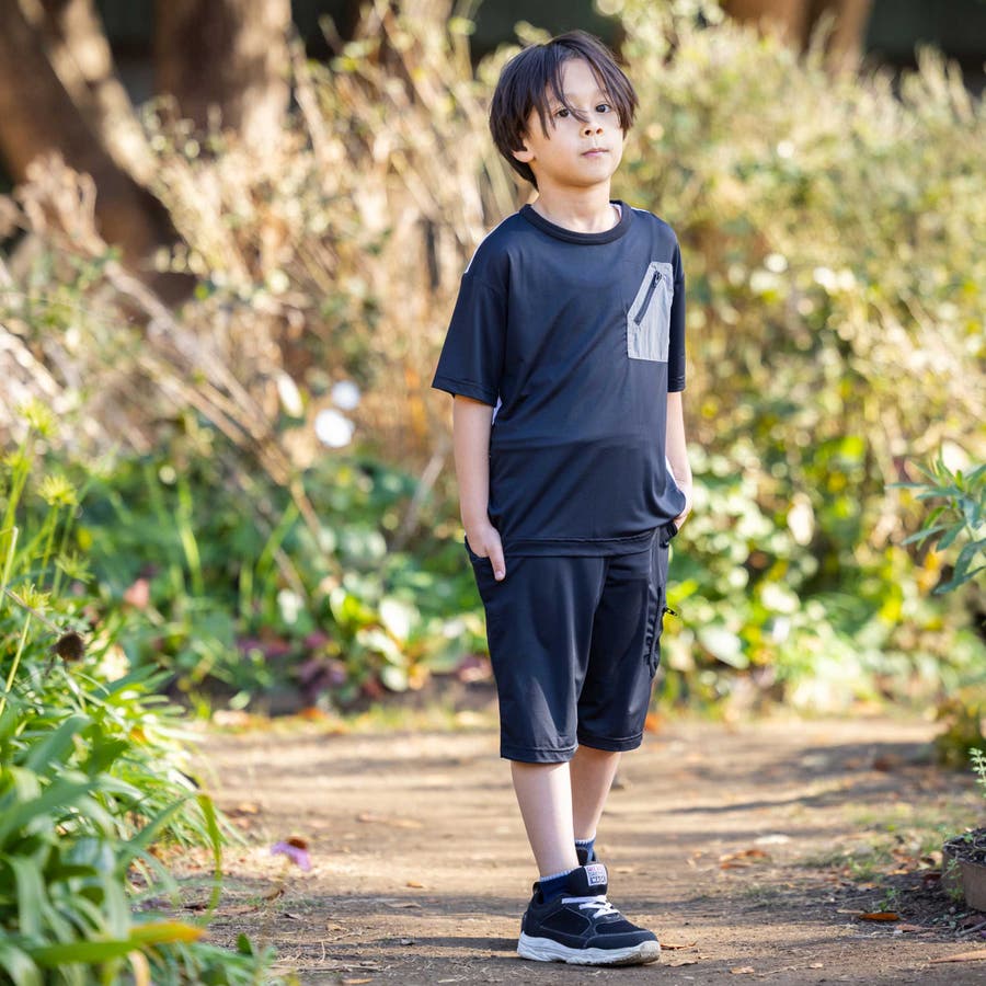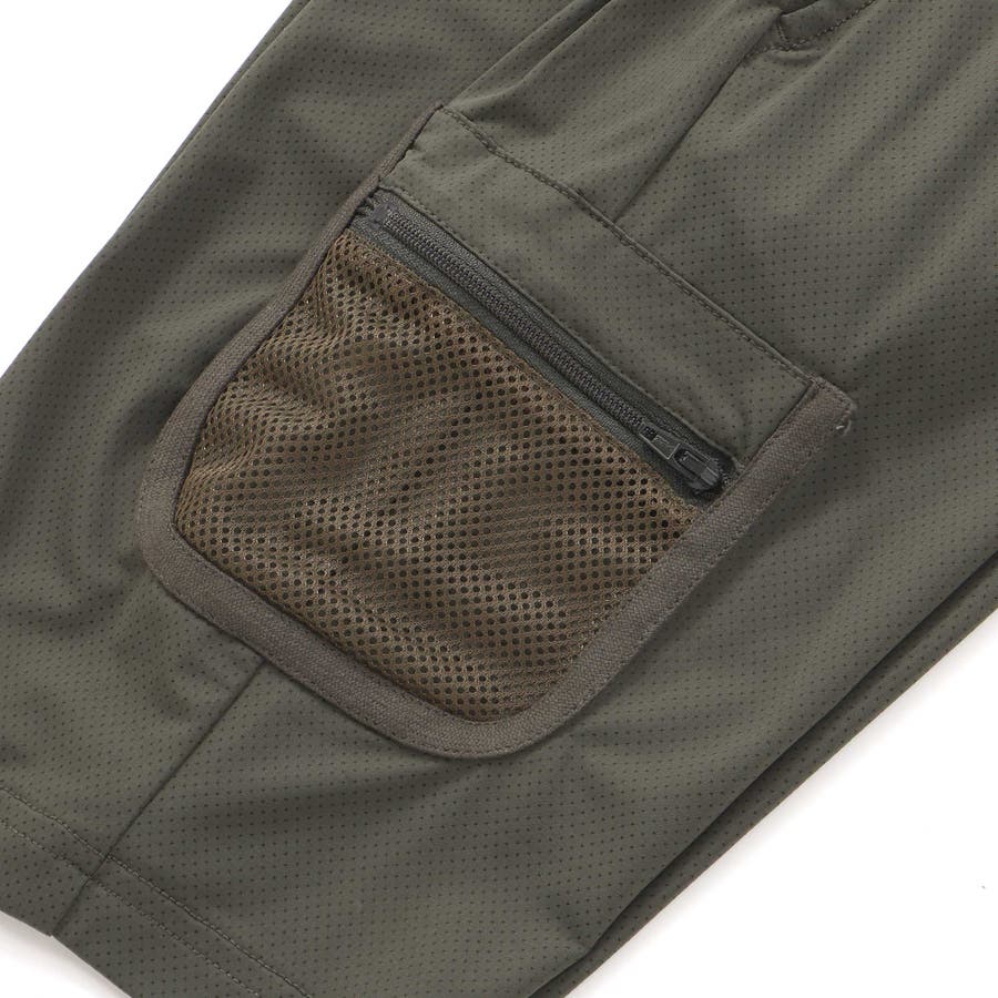 1350-73043:5.5分丈ファスナーポケット速乾メッシュパンツ