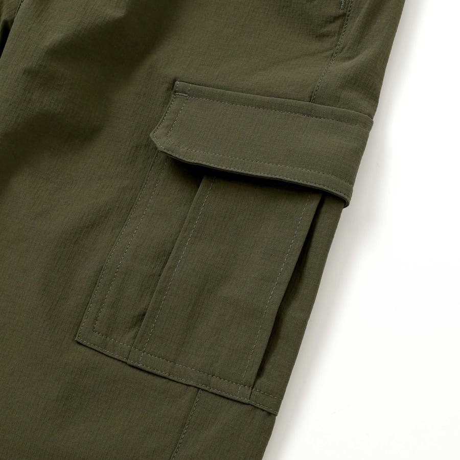 薄手でストレッチ性のあるリップストップ素材を使用しているため、軽やかで動きやすく、快適な履き心地が魅力のカーゴパンツです。