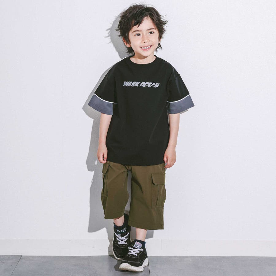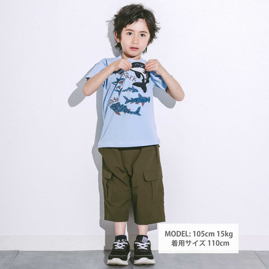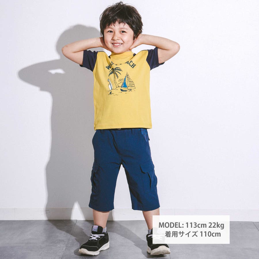 6分丈ガラ切り替えリップストップカーゴパンツ(100~160cm)