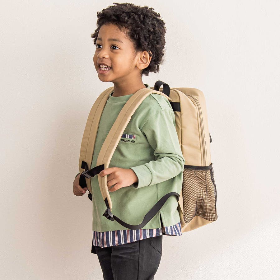 サイドやフロントにもポケットを完備し遠足や行事にも重宝間違いなしのアイテムです。