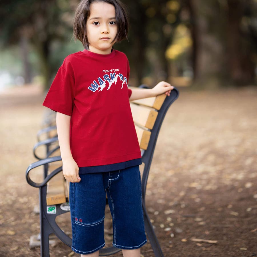 【抗菌防臭】裾レイヤード風マウンテンロゴ天竺Tシャツ(100~160cm)
