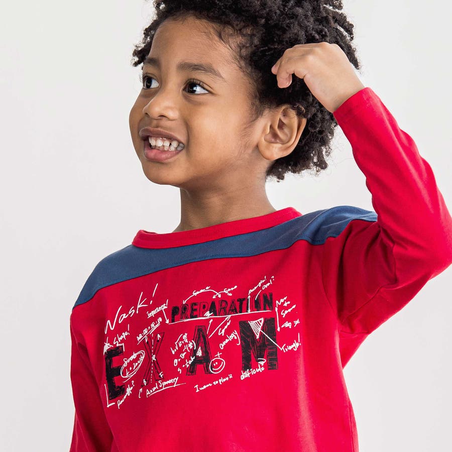 子どもあるあるの、問題を解いて所々間違えてぐちゃぐちゃっとした手書き風のロゴプリントがとってもユニーク♪