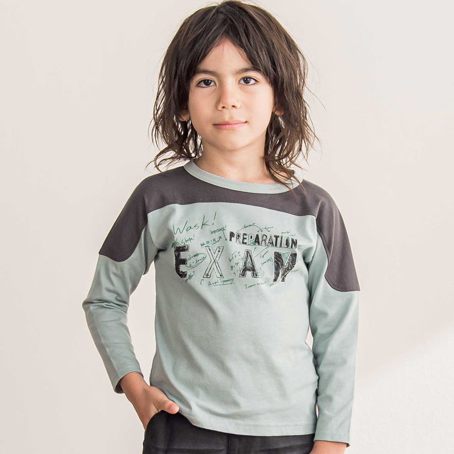 バイカラー手書き風ロゴ天竺Tシャツ(100~160cm)