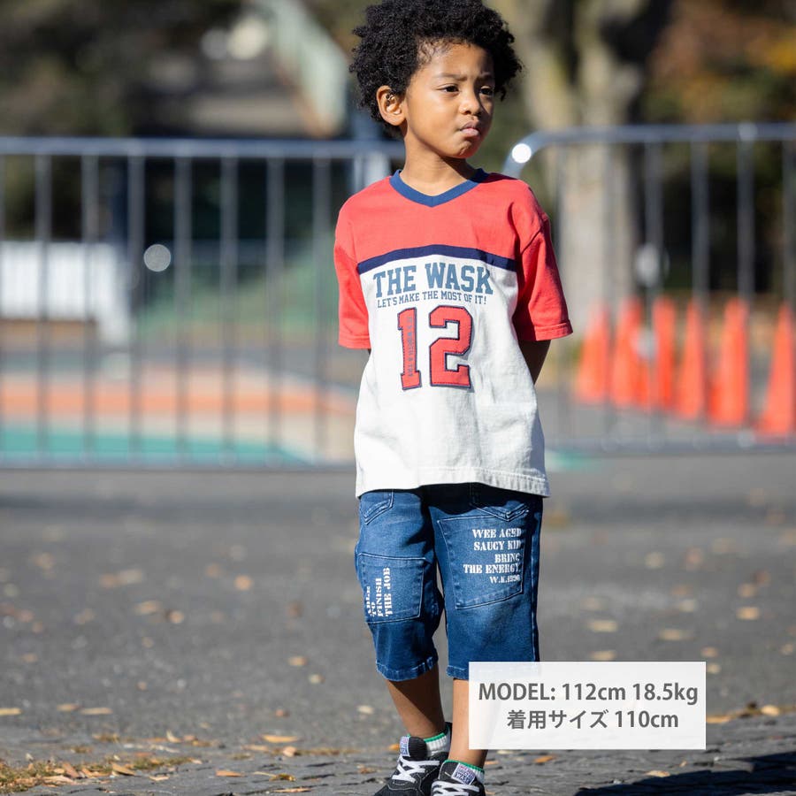 6分丈パッチワークロゴストレッチデニムパンツ(1350-72514)