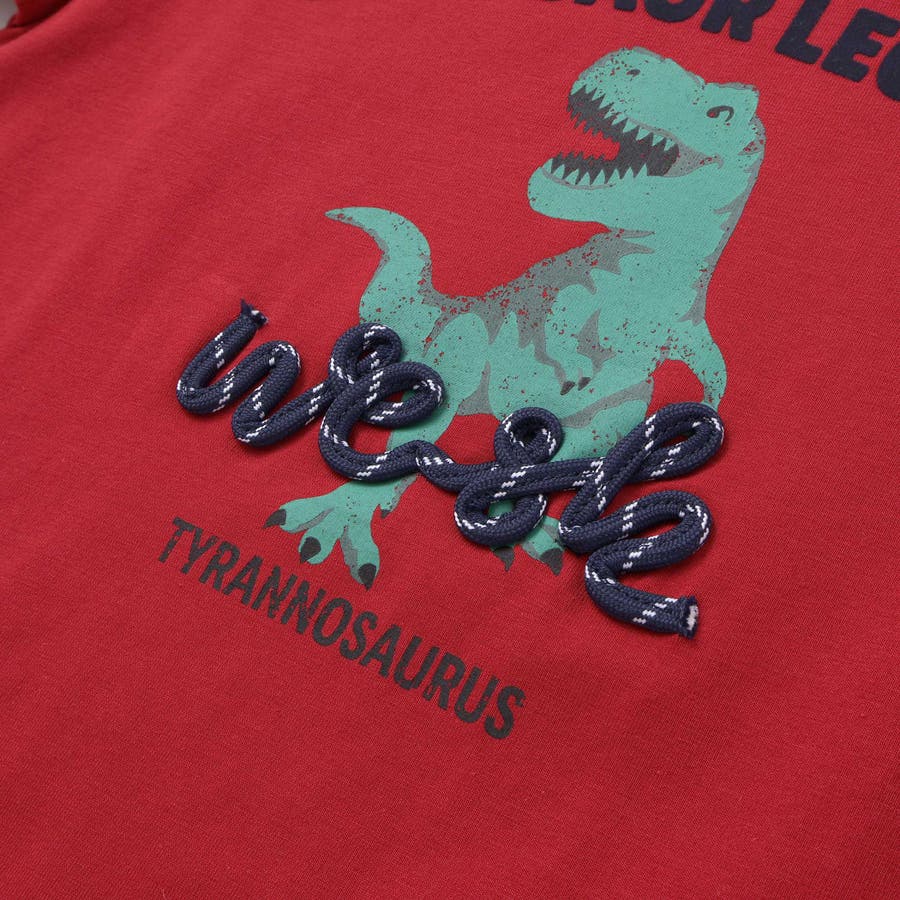 人気のティラノサウルスを大胆にプリントした、存在感たっぷりのTシャツ。