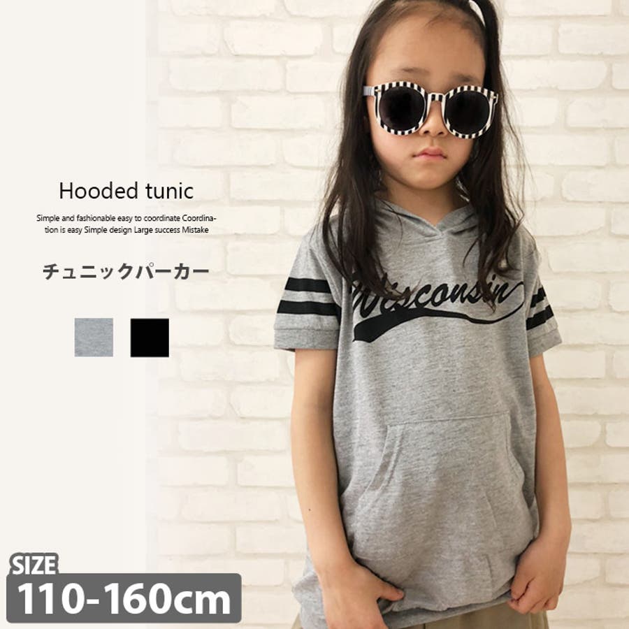 商品名 | キッズ チュニック パーカー子供服 半袖 女の子 ガールズ プルパーカー プリント ロゴ ライン ジュニア 韓国子供服 110cm 120cm 130cm140cm 150cm 160cm | ||||||