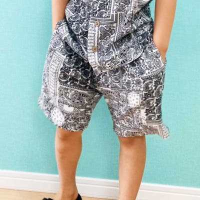 生地が浴衣や甚兵衛のような生地で 涼しそうです。アロハ生地っぽくてこれからの季節にちょうどいいです!