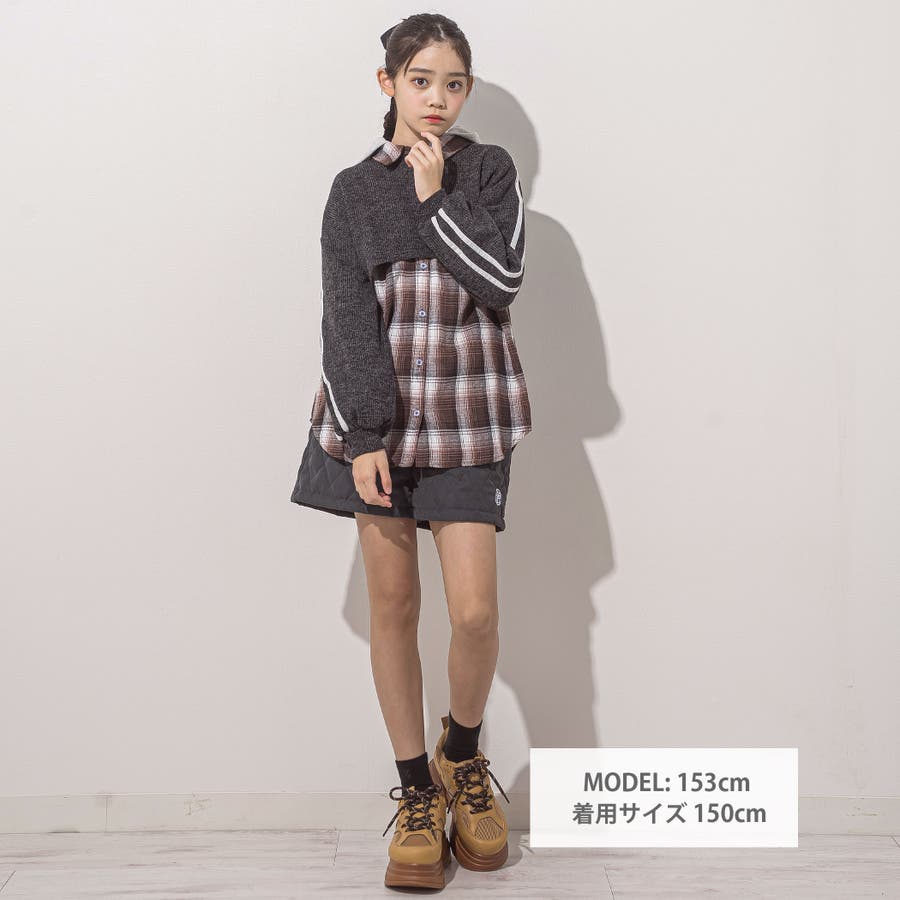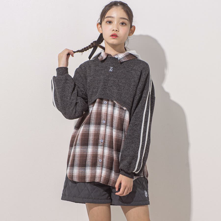 ニットとロンTを重ねて着れば、簡単にオシャレガールの完成!