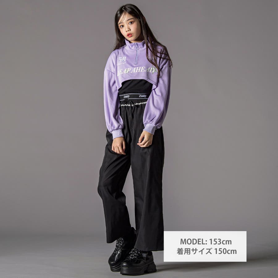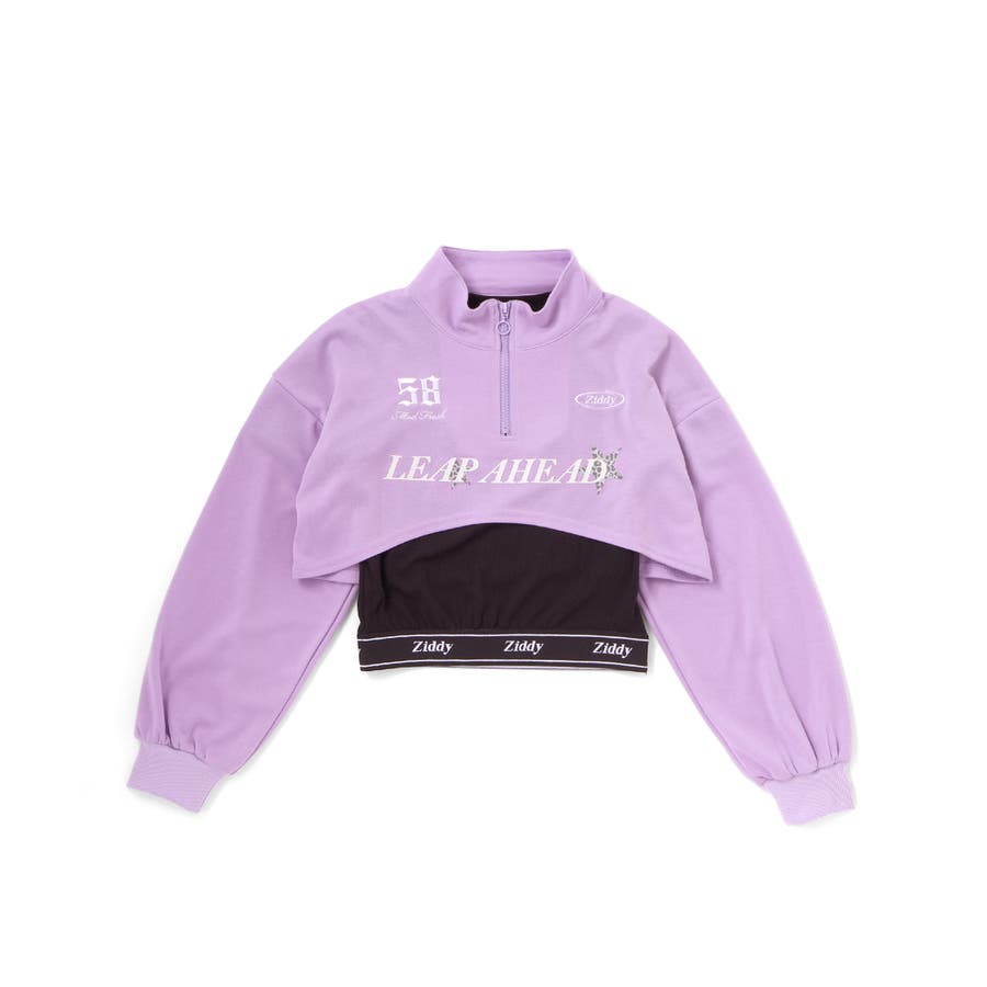 ハーフジップドロップショルダートップス&短丈半袖Tシャツセット(130~160c…