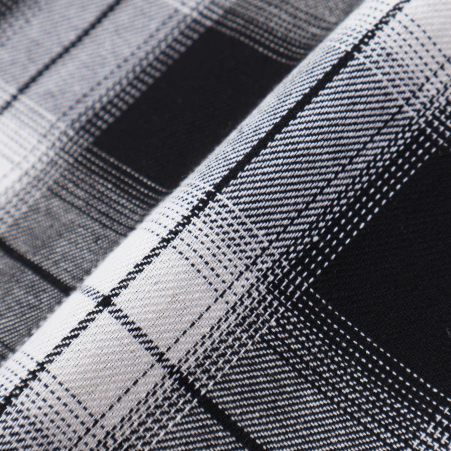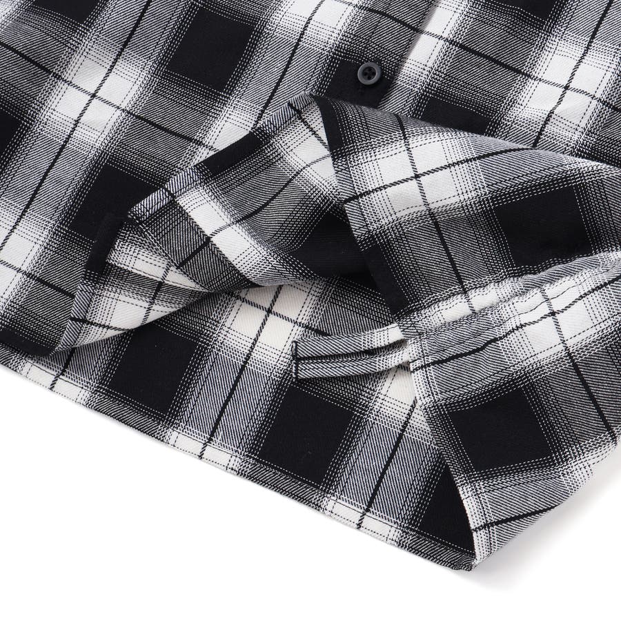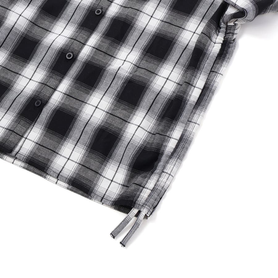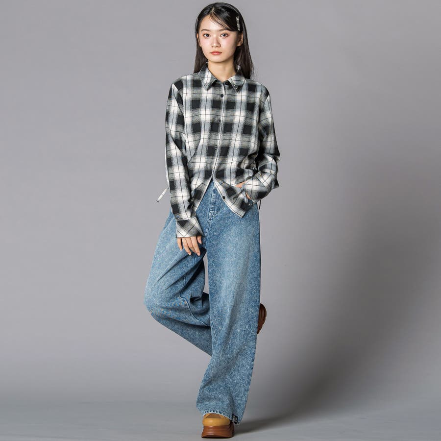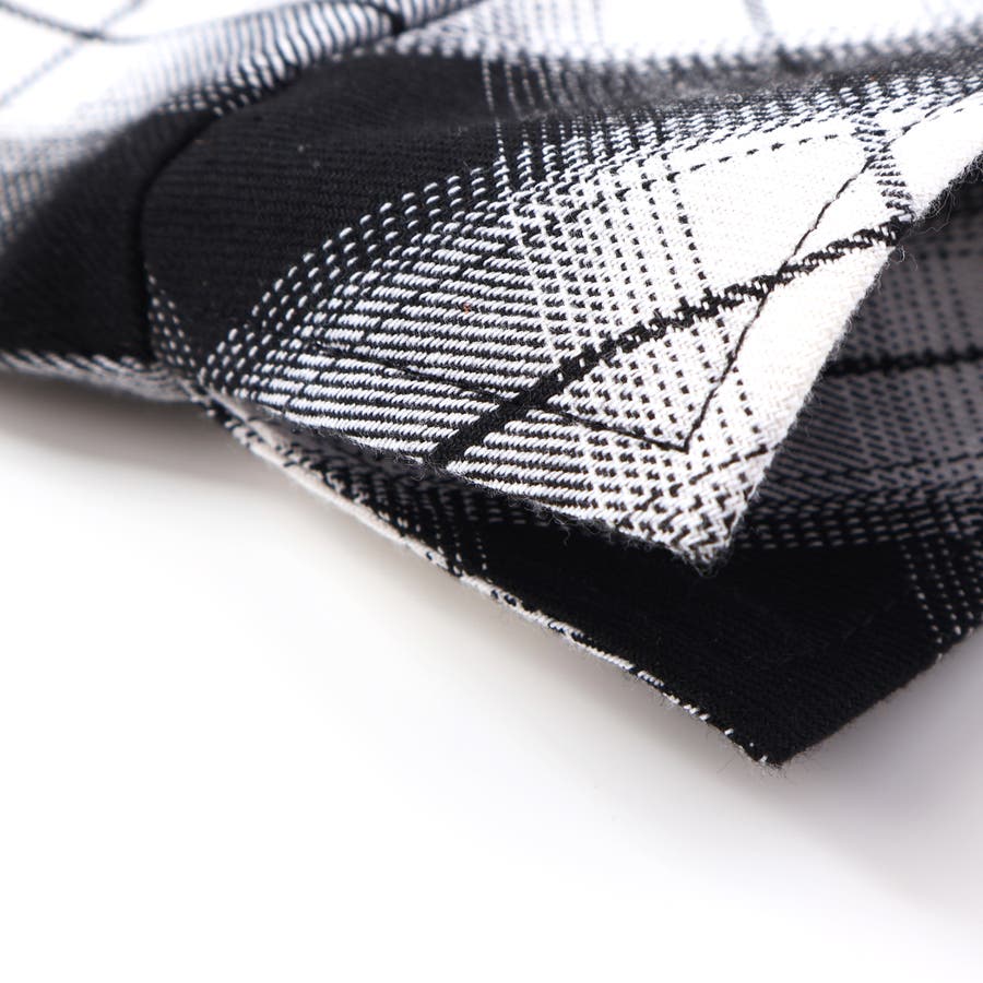 シャツは軽やかなエコチェックでロングシーズン使いやすく、重ね着してももたつかないソフトな風合い。