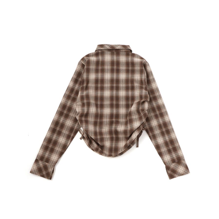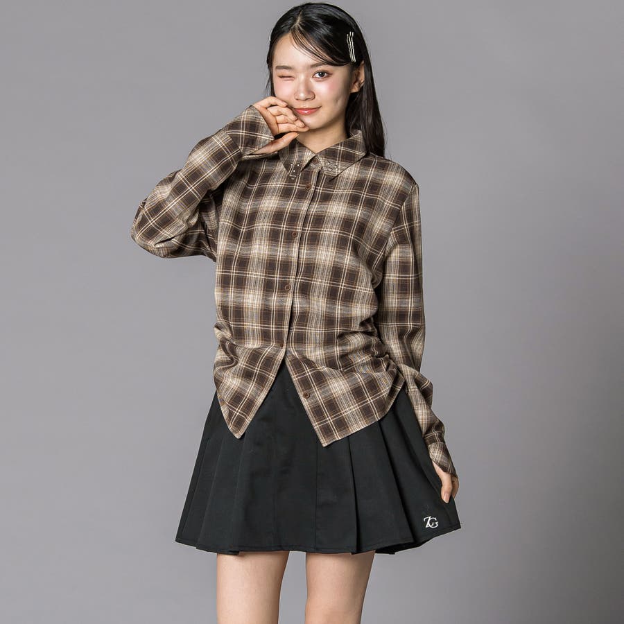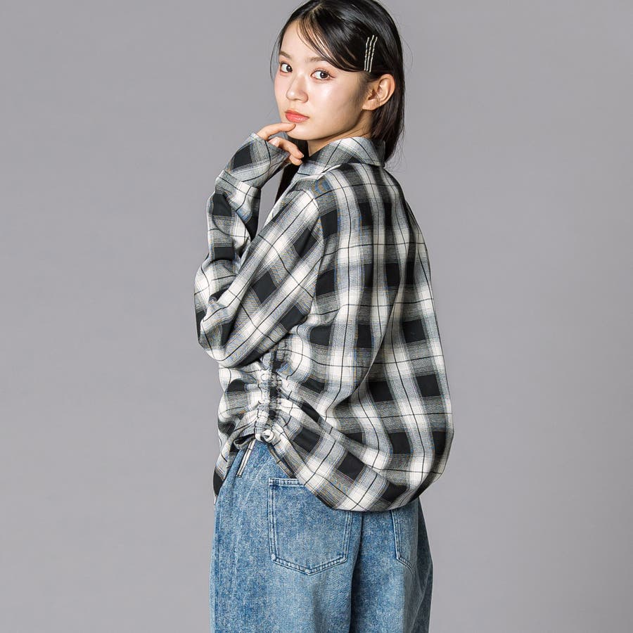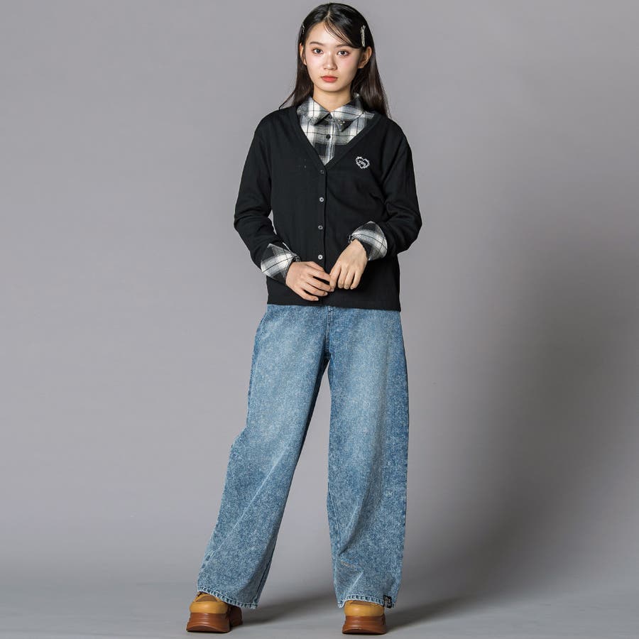 ドロスト脇がかわいく動くチェックシャツに、Vネックカーデの左袖刺しゅうがさりげなく主張してくれて、大人っぽいけど盛れ感はちゃんとキープ。