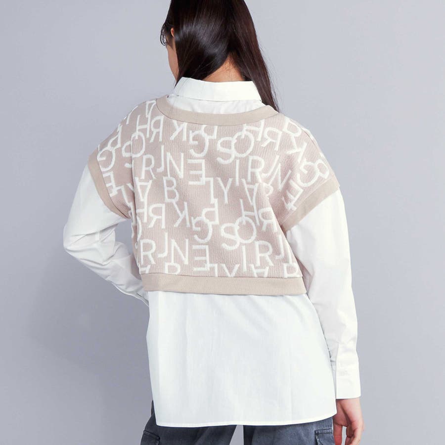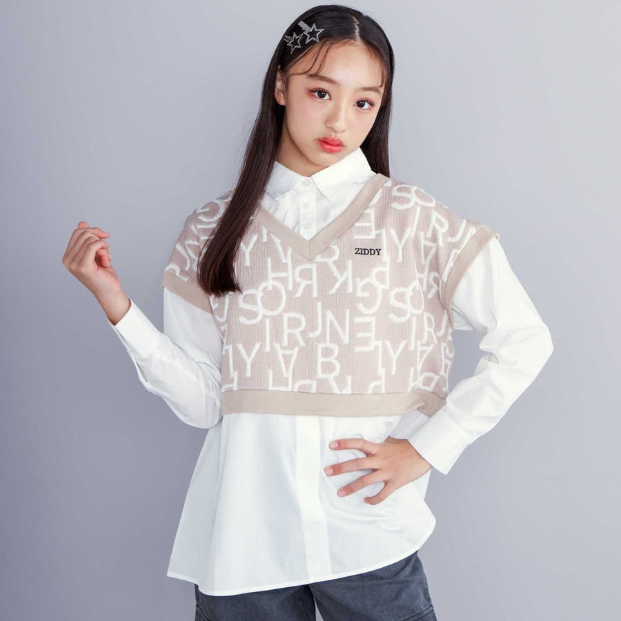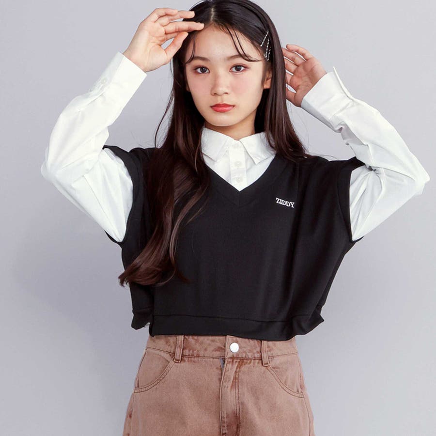 短めのベストと長めの丈のシャツが一体になって、重ね着みたいなオシャレがコレ1枚で完成!