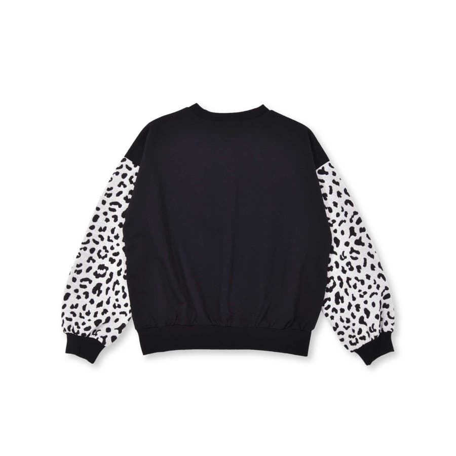 ヒョウ柄の袖と無地の異素材切替で存在感バツグンの裏毛起毛ドッキングトレーナーです。