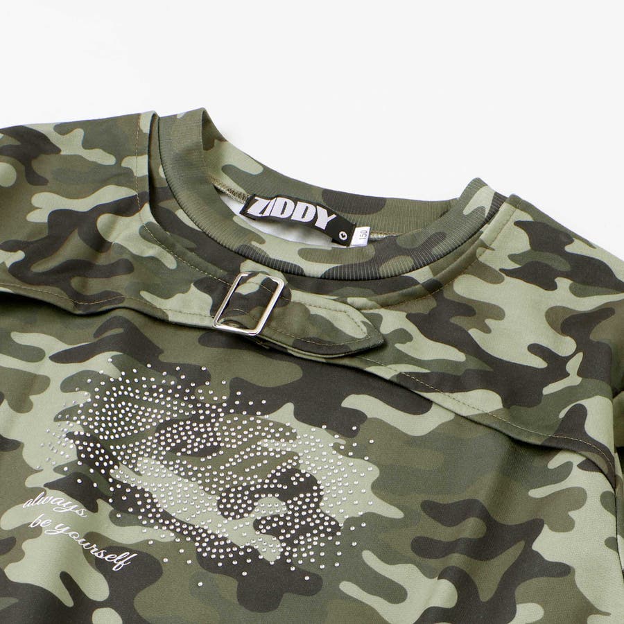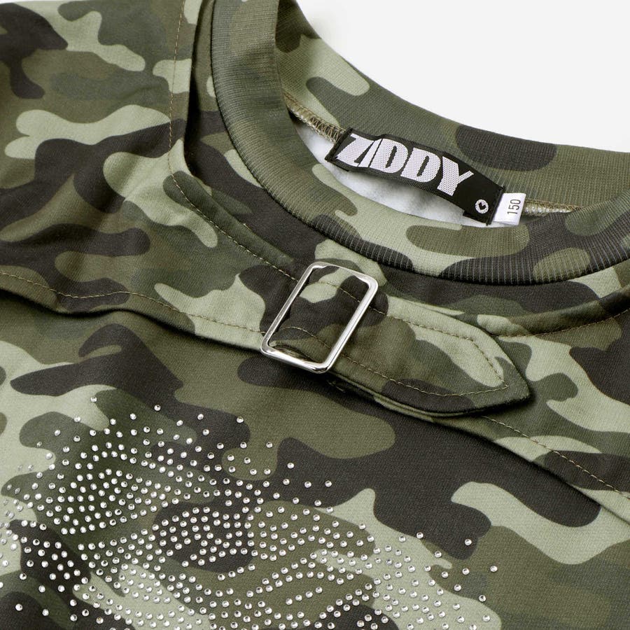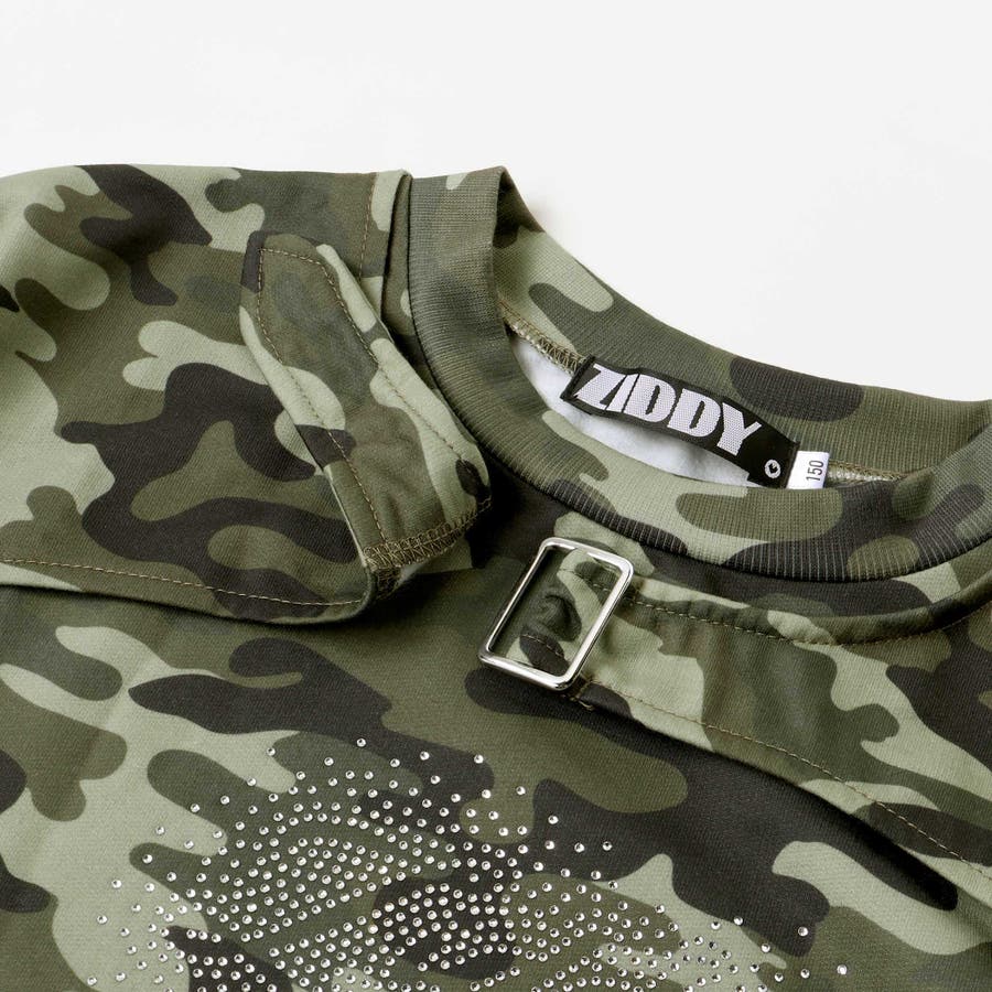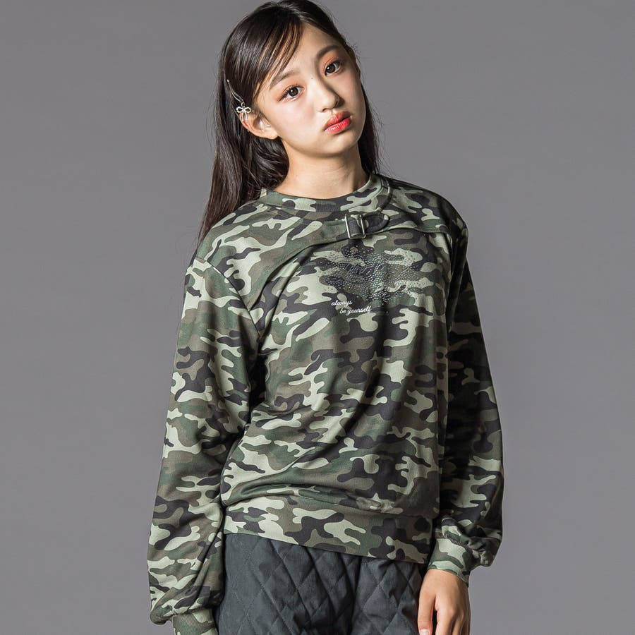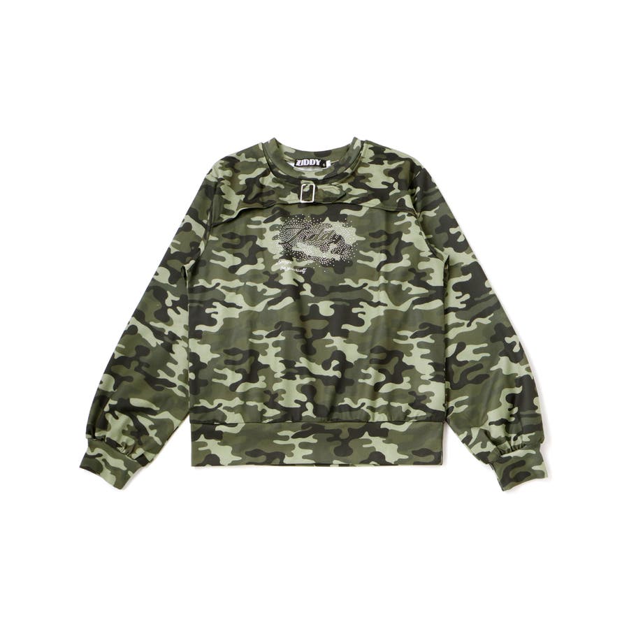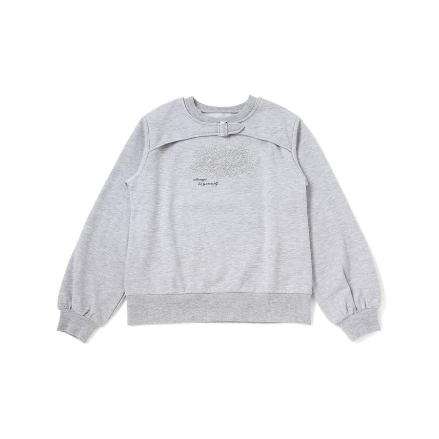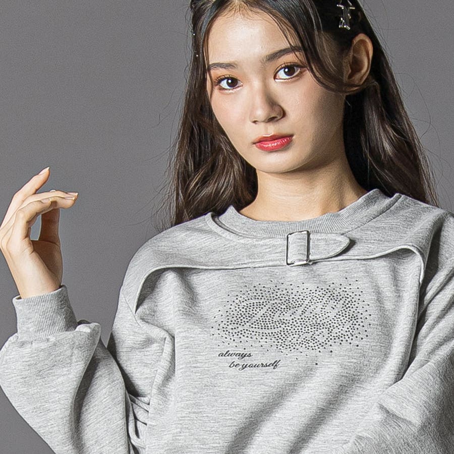 胸元のベルト風デザインとラインストーンロゴがポイントの、ちょっぴりストリートなZIDDY裏起毛トレーナー。