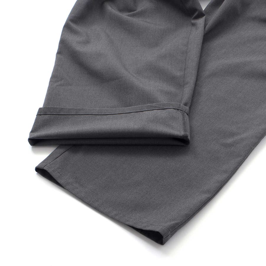 ゴム入りスラックス風ボトムは、オン・オフ両用で使えるアイテムとして人気。