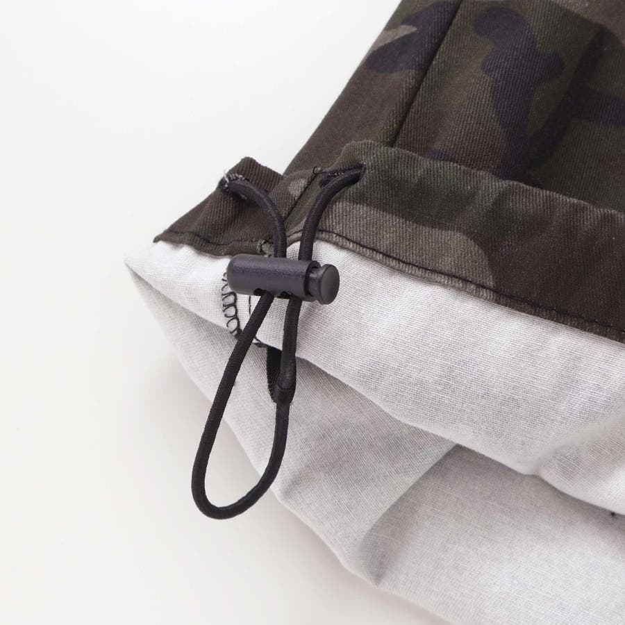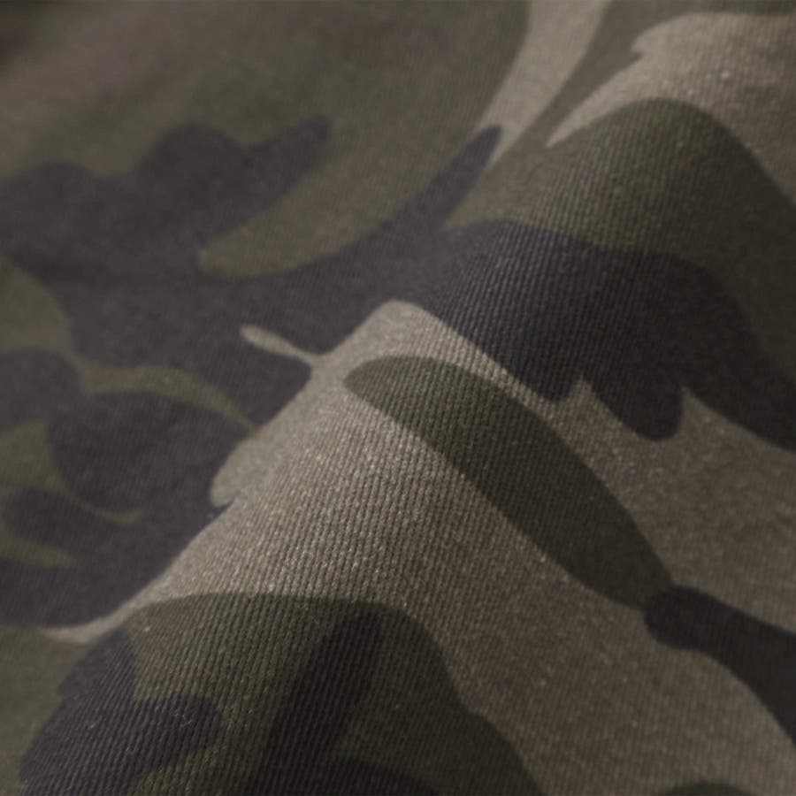迷彩柄(グリーン系)は綿100%だからナチュラルでやさしい肌ざわり。