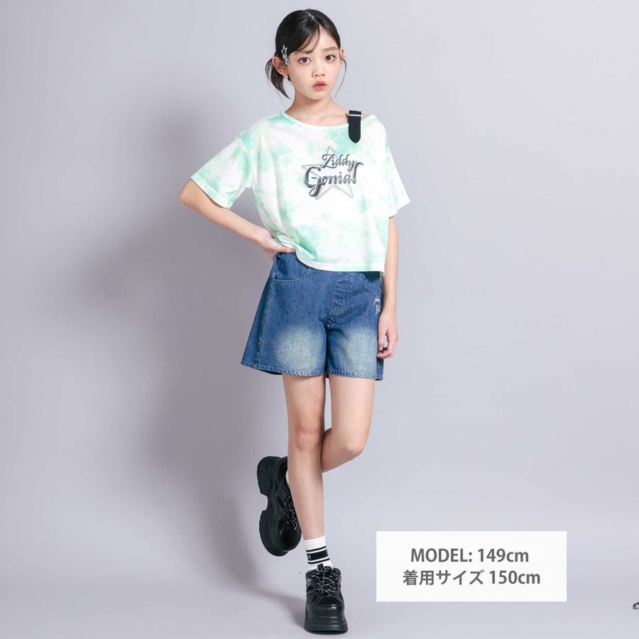 【 ニコ☆プチ 掲載 】オーバーダイショートデニムパンツ(130~160cm)