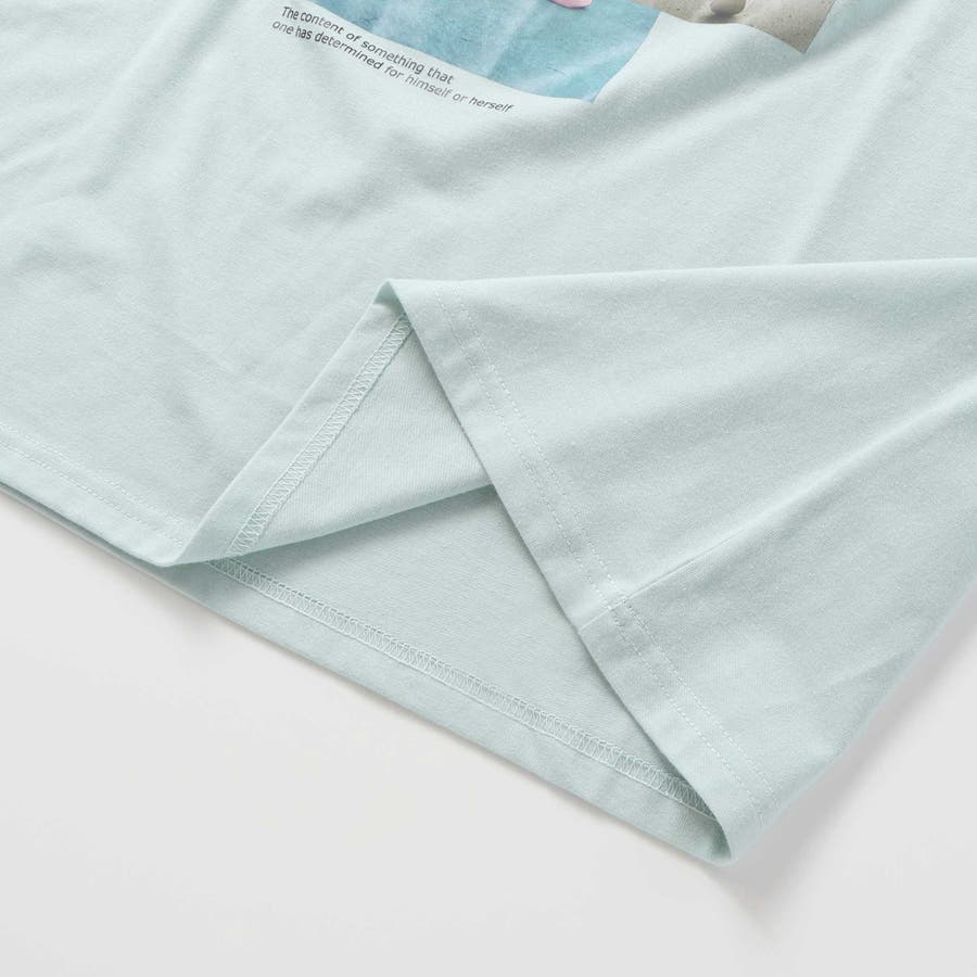 どんなボトムスと合わせても、このフォトプリントTシャツがコーデの主役になってスタイルがぐっと引き立つよ。
