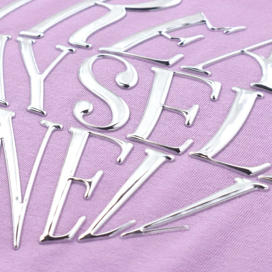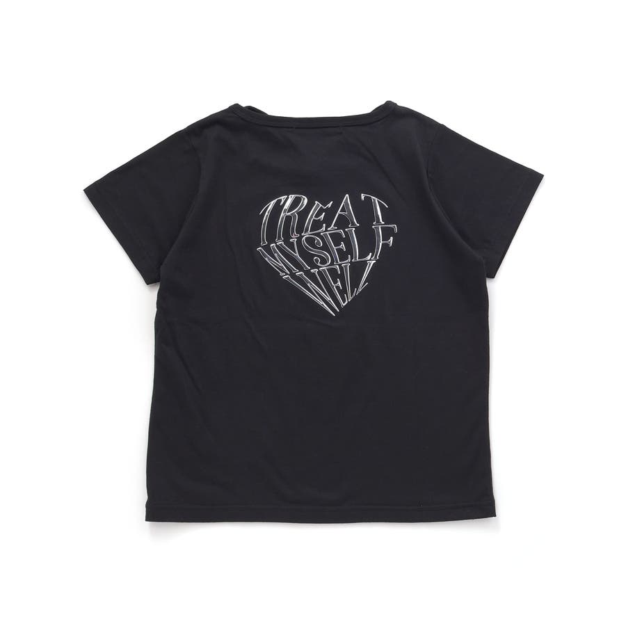 胸元にはぷっくりとしたジェルプリントのハートモチーフが輝いていて、キラキラ感がアクセントに。