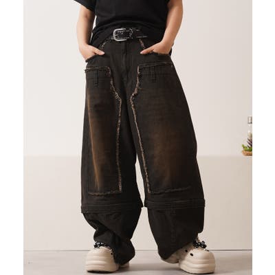 【1111clothing】2WAY Double Knee Wide Curve Pants
