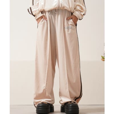 メンズ レディース セットアップ ラフ着 トラックパンツ ジャージ ライン サイドライン ワンポイント ロゴ LOGO 刺繍 スウェード スエード ボトム ボトムス パンツ 緩めパンツ 秋冬 新作 秋服 冬服