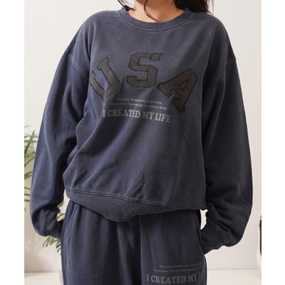 スウェット スエット トレーナー 長袖 ウォッシュ加工 ピグメント ピグメント加工 流加染 アップリケ プリント 秋 冬 春 秋服 冬服 春服 ラフ着 新作 トレンド メンズ レディース