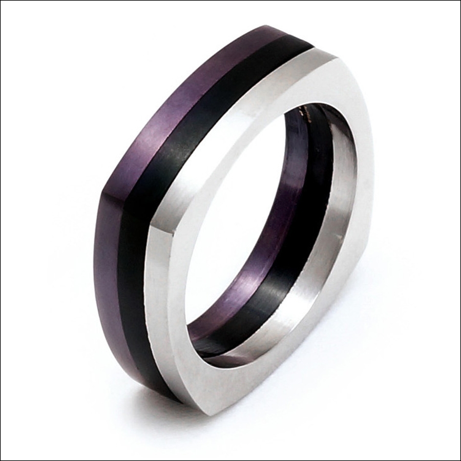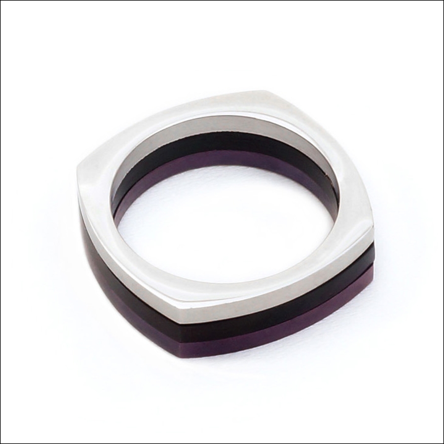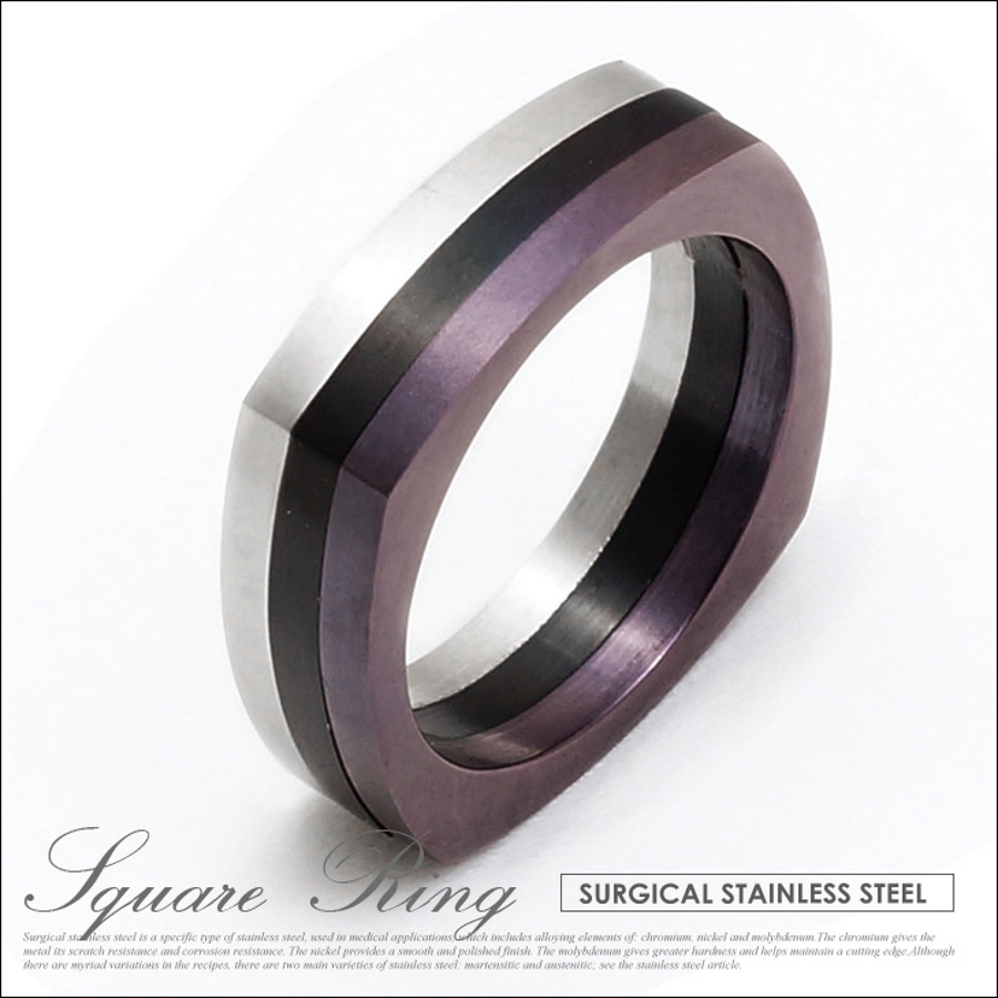 それぞれ違う色の3層で構成されたステンレス製リング!シンプルなシルエットながらも個性的なデザイン!