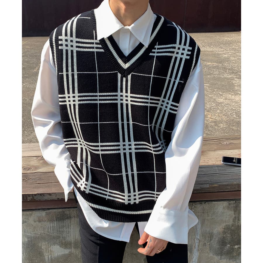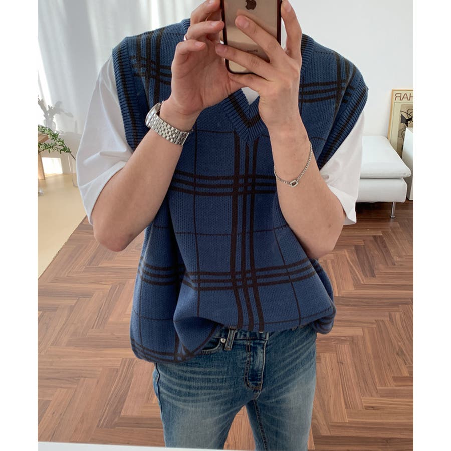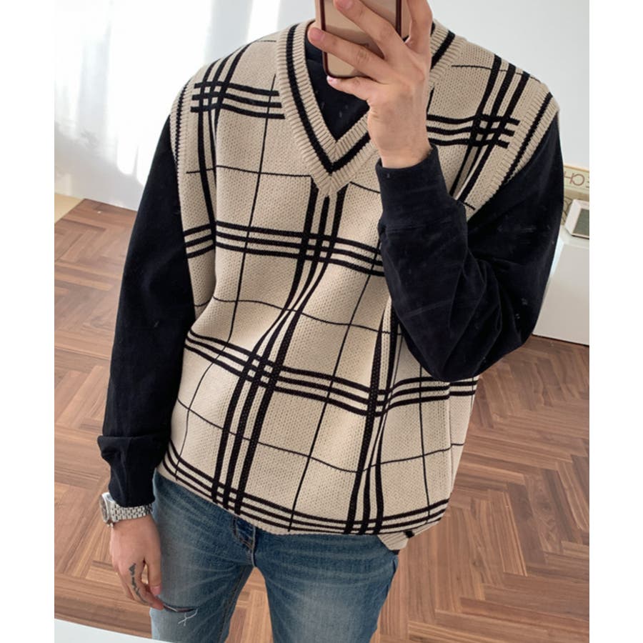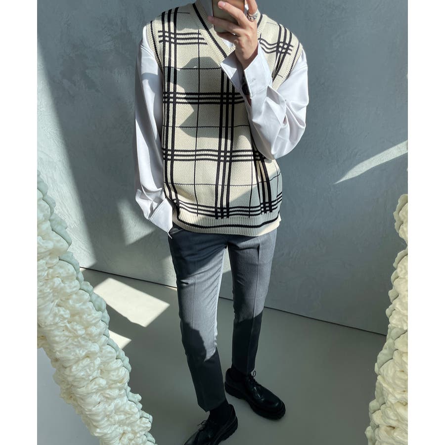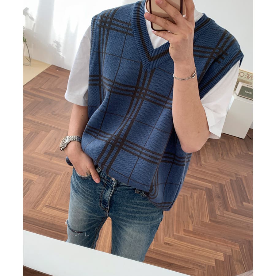 ASCLO(エジュクロ)オーバーサイズチェックVネックベスト