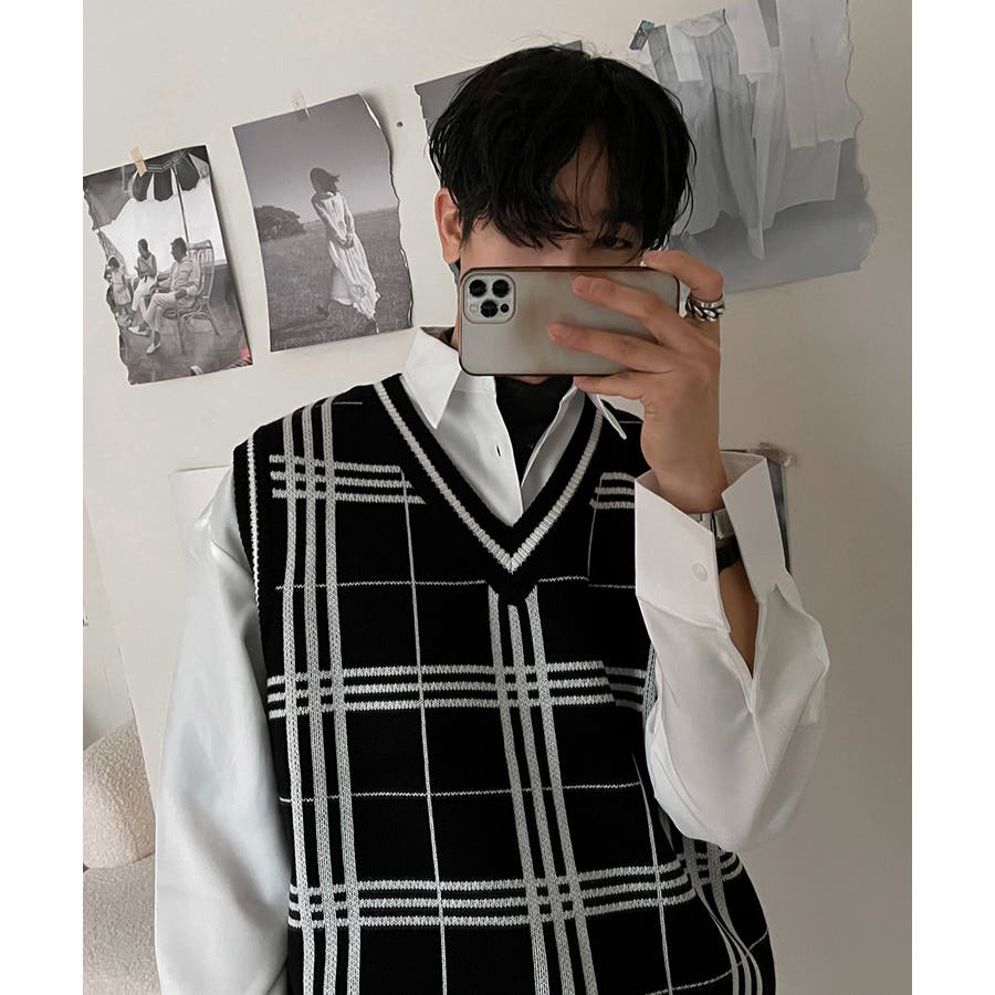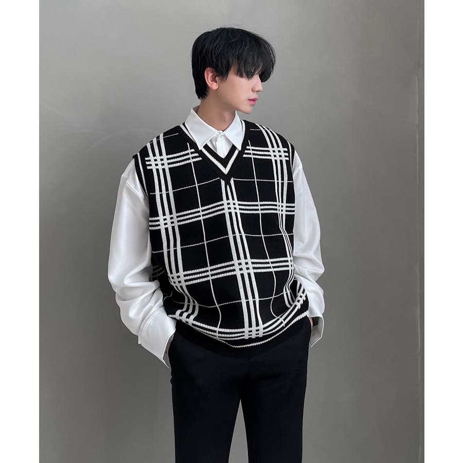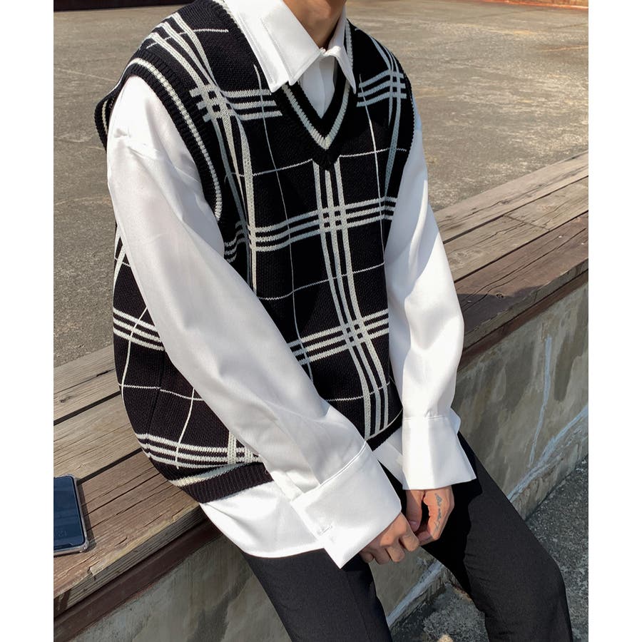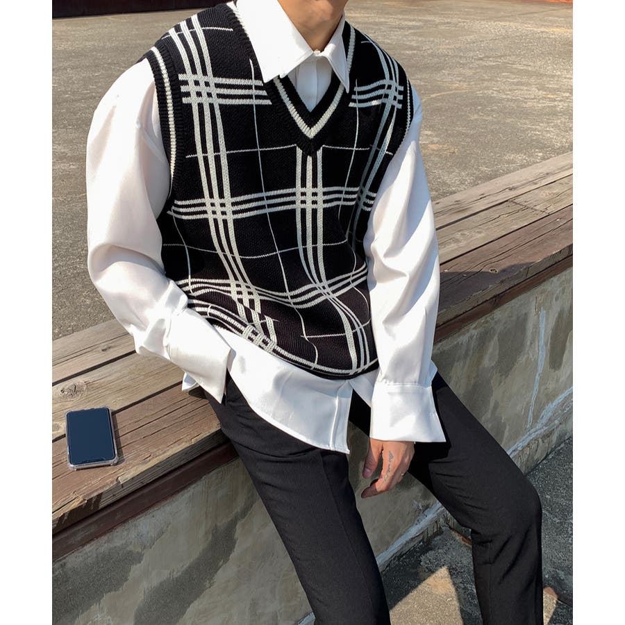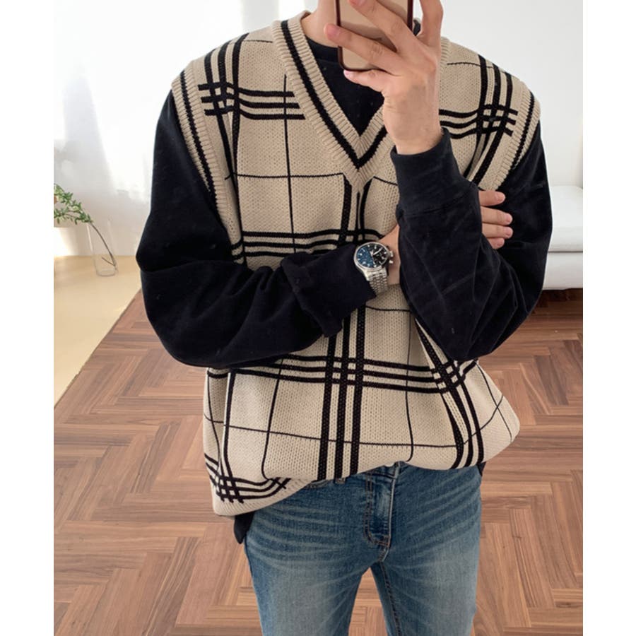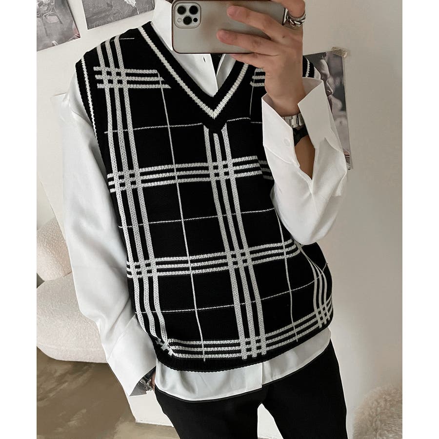 ASCLO(エジュクロ)オーバーサイズチェックVネックベスト