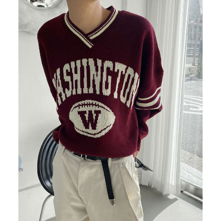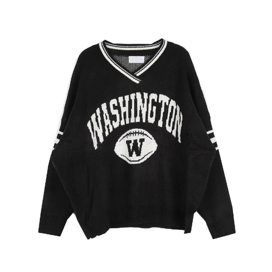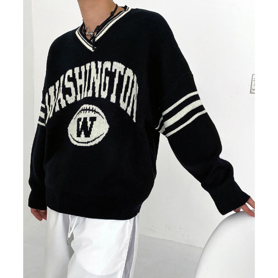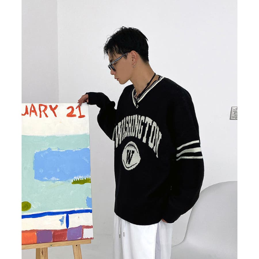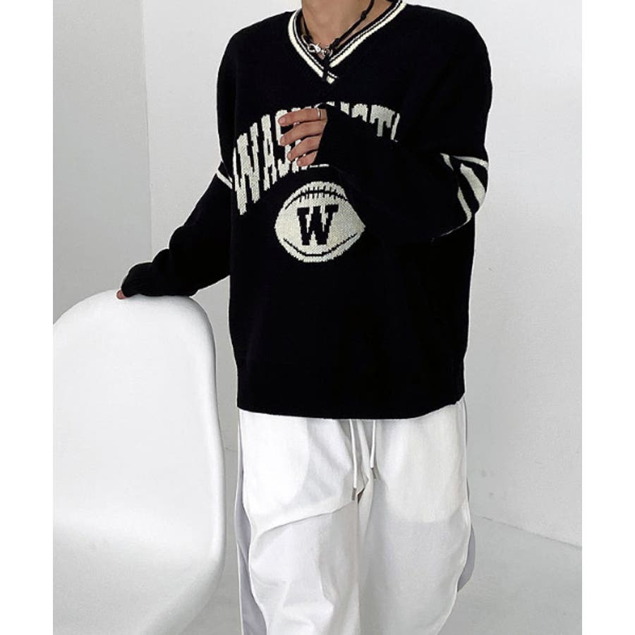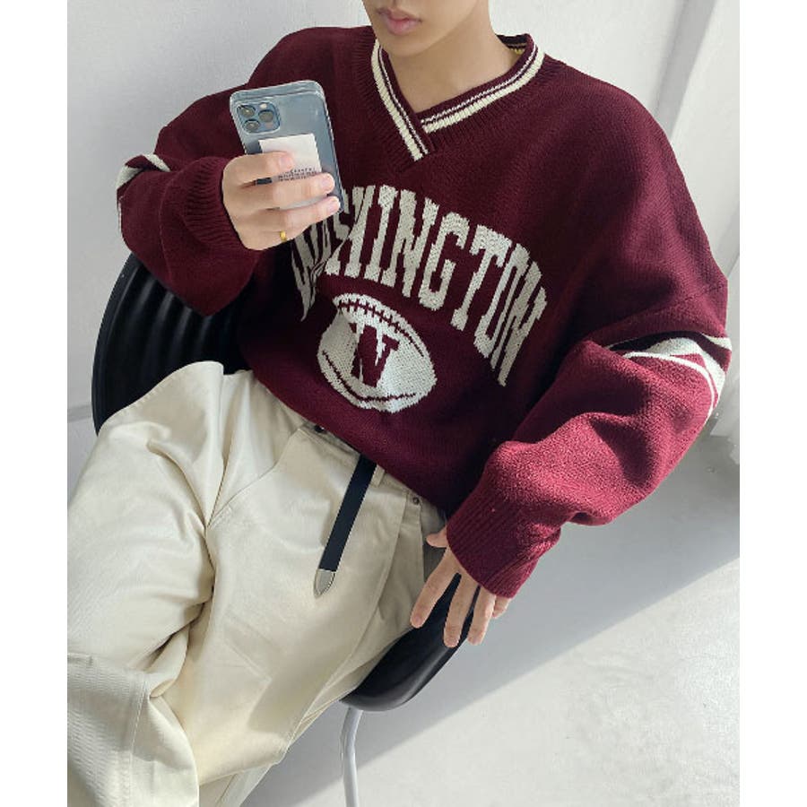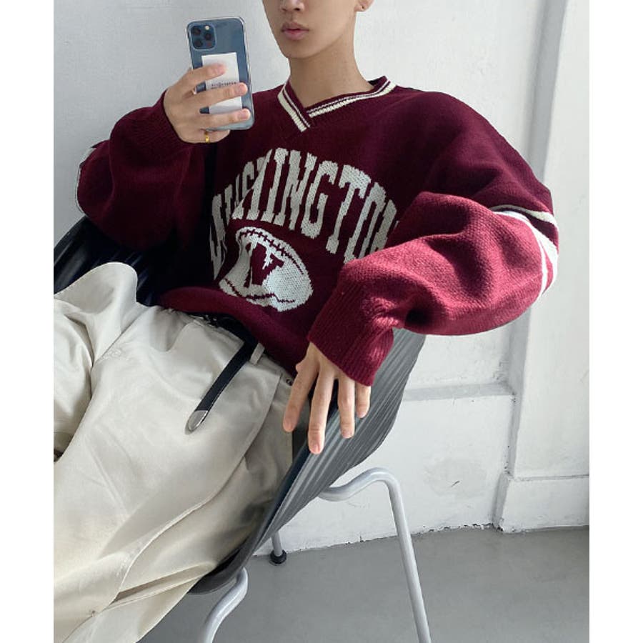 韓国 韓国ファッション トップス ワシントン Vネック ニット プレッピー ストリート カジュアル ライン オーバーサイズ 着回し 秋冬 秋 冬服 冬 春 春服