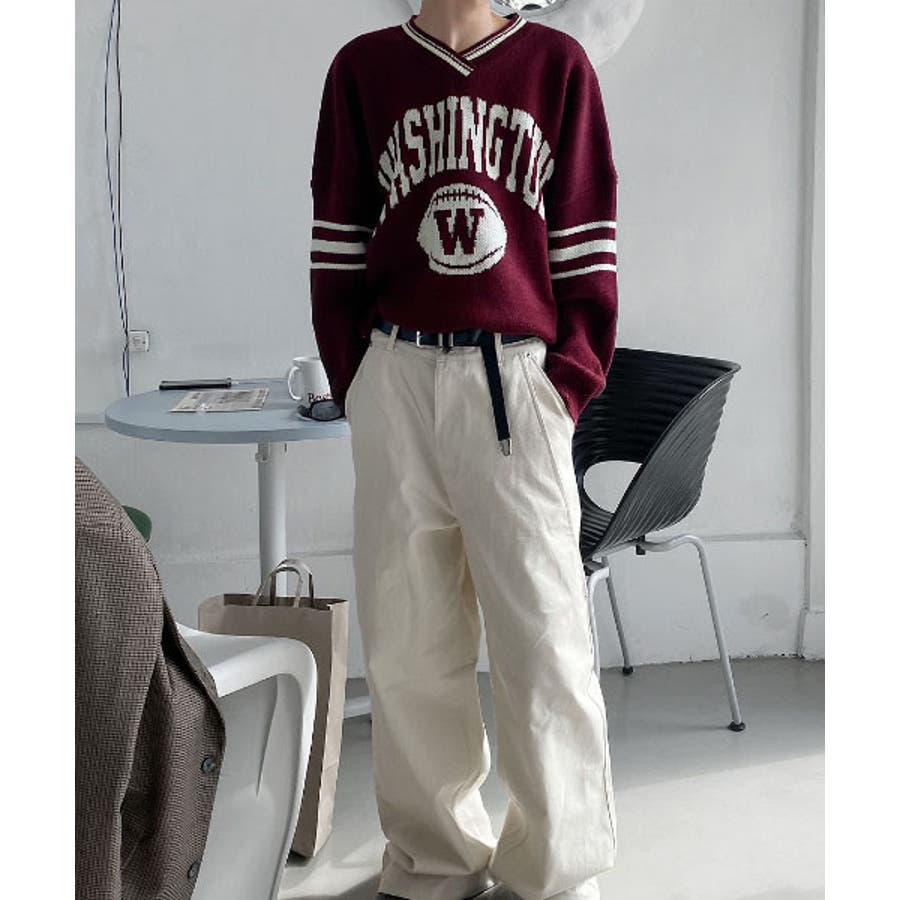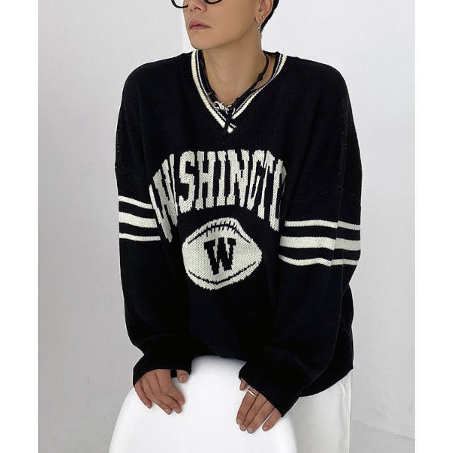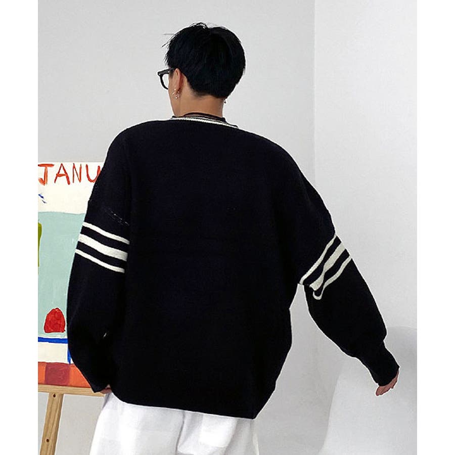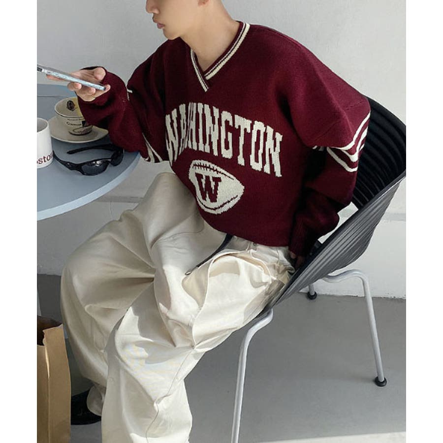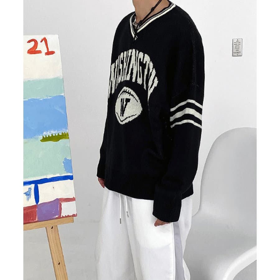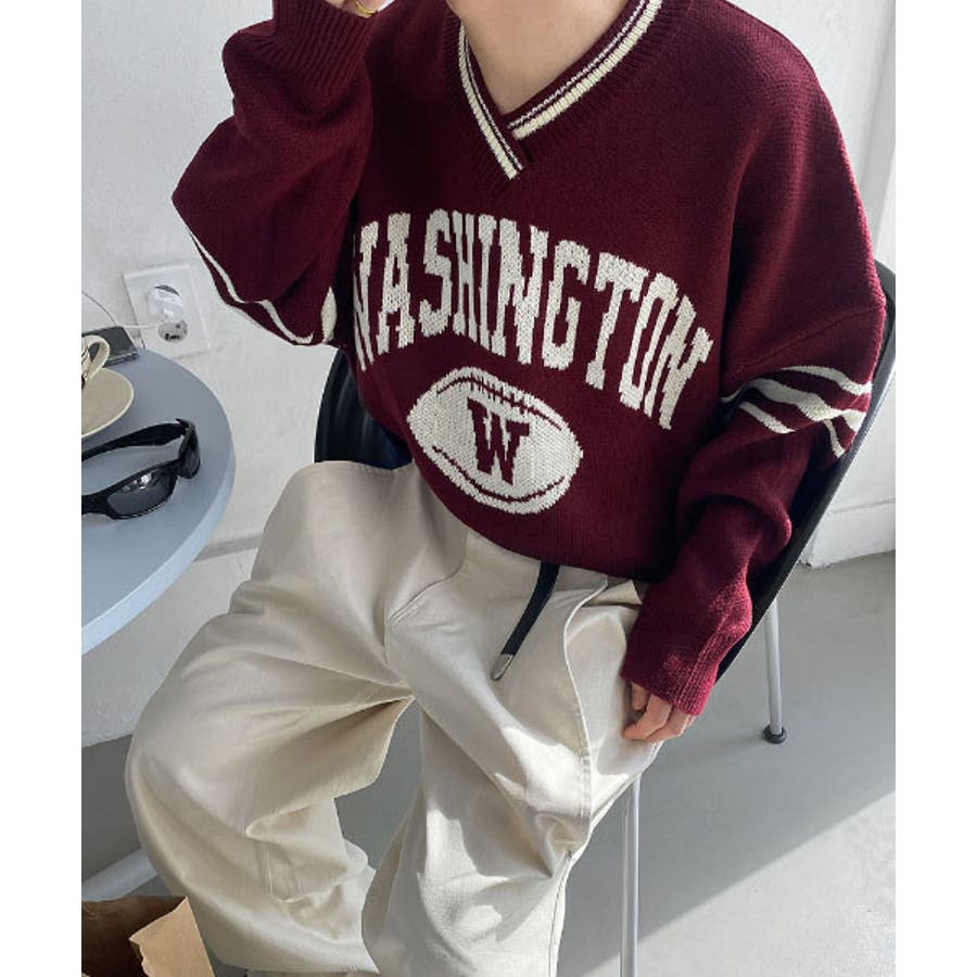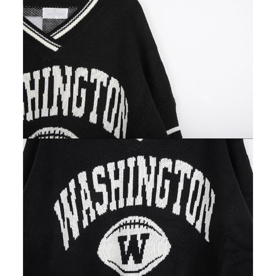 韓国 韓国ファッション トップス ワシントン Vネック ニット プレッピー ストリート カジュアル ライン オーバーサイズ 着回し 秋冬 秋 冬服 冬 春 春服