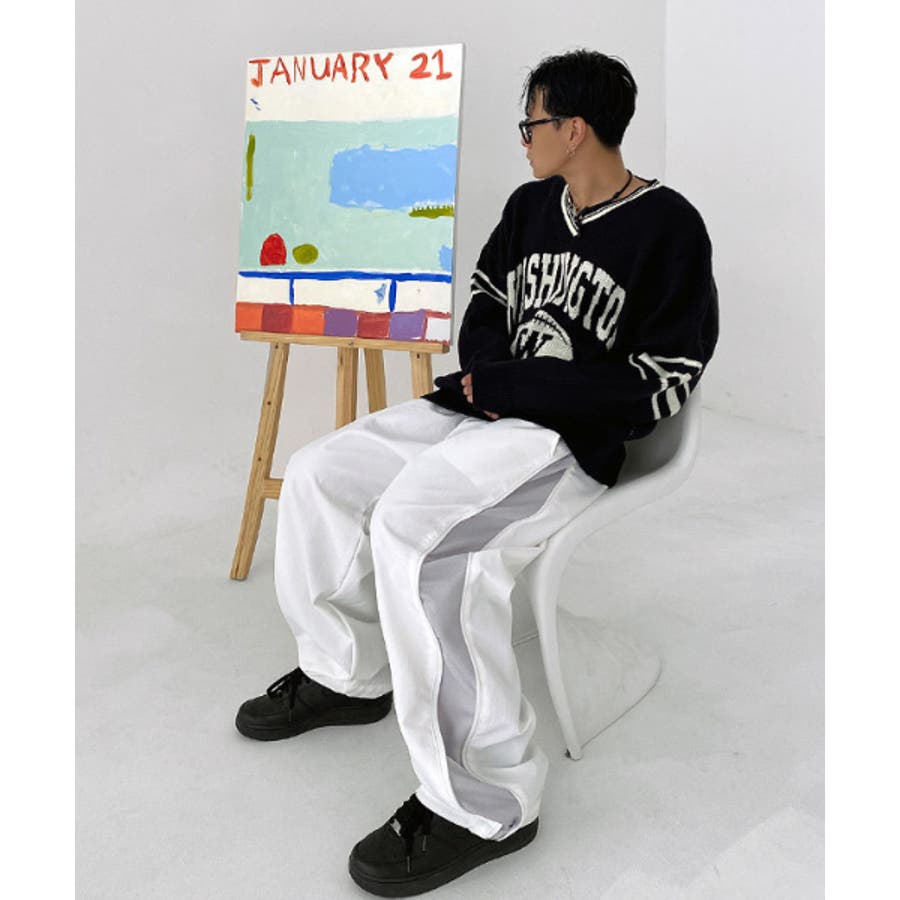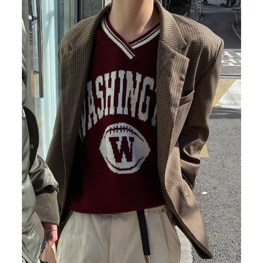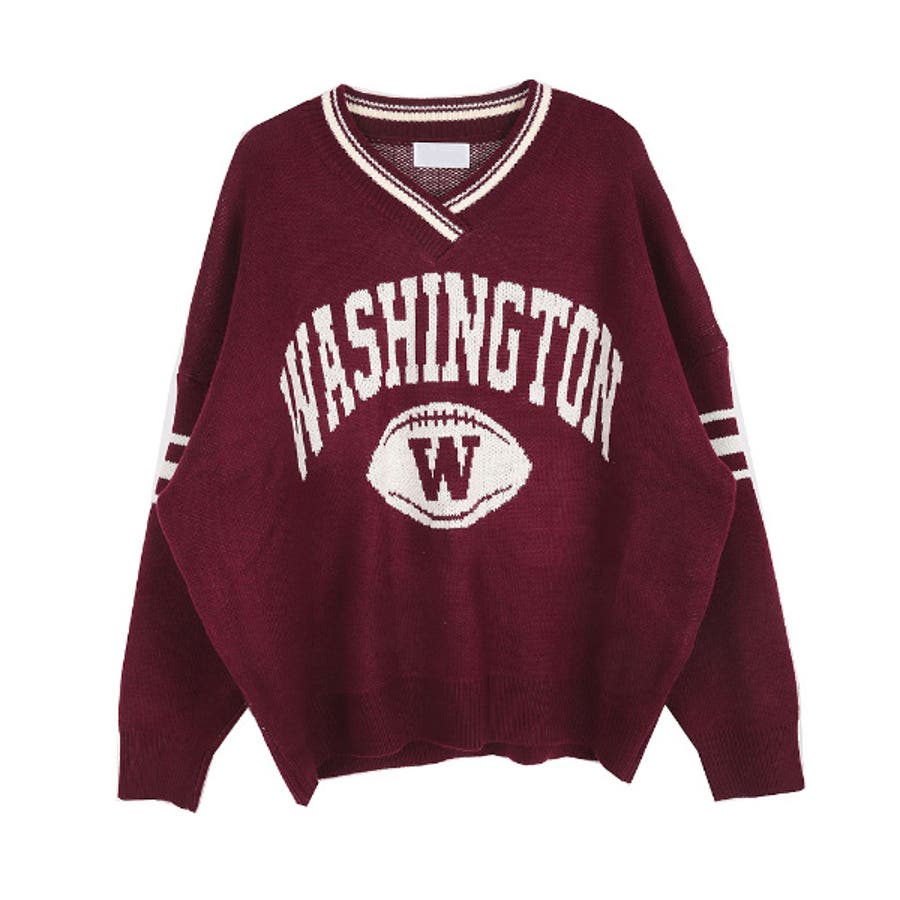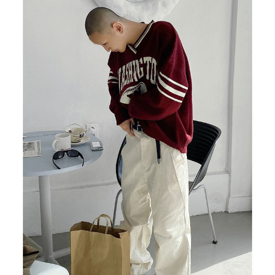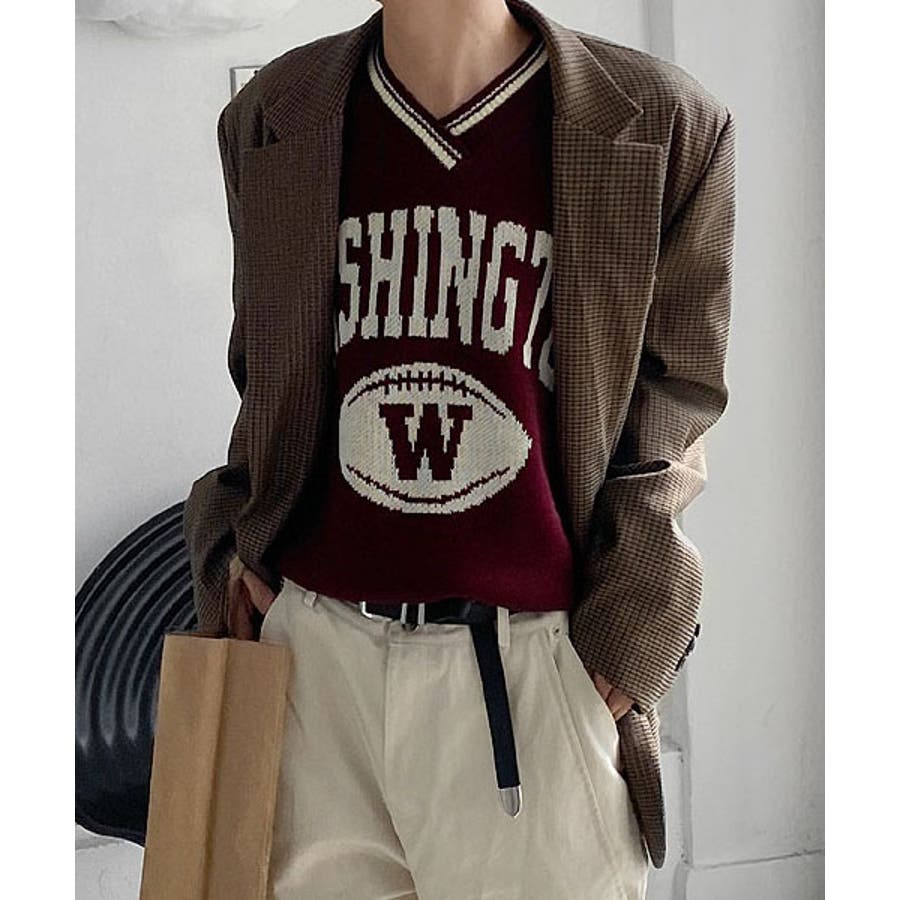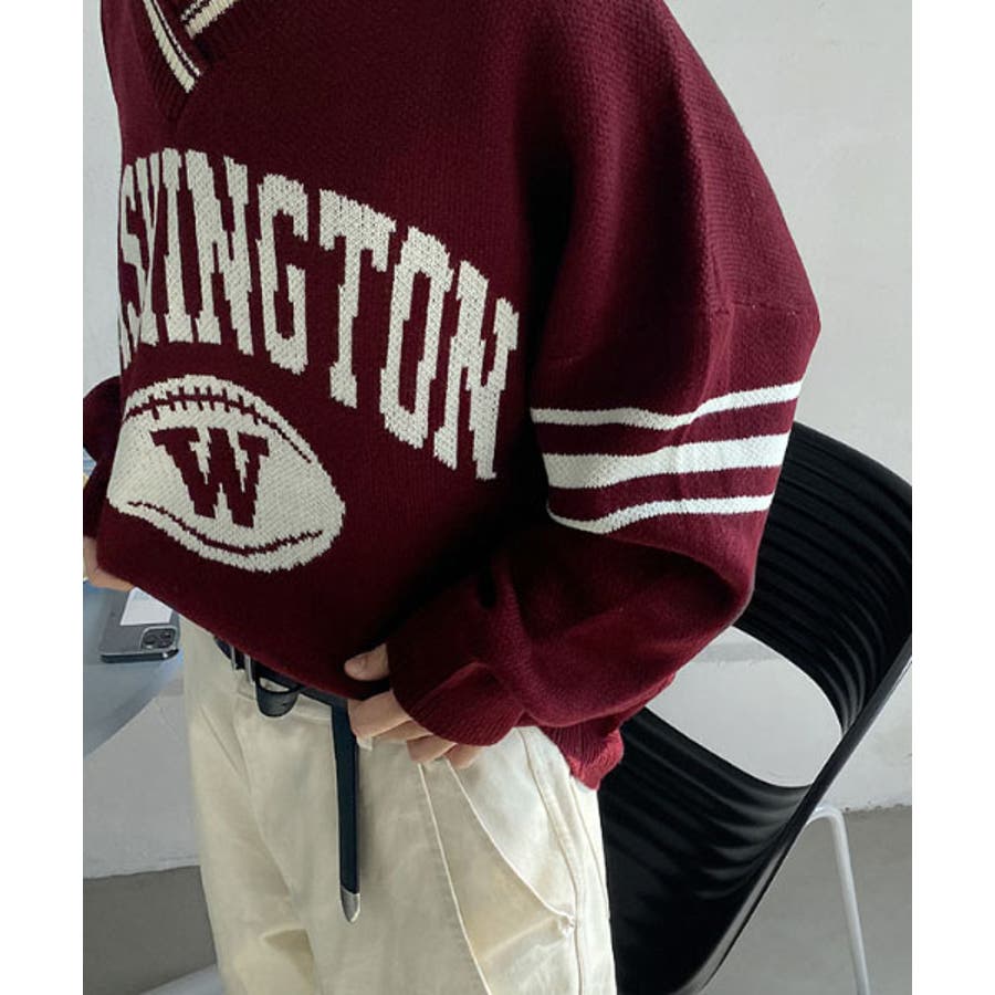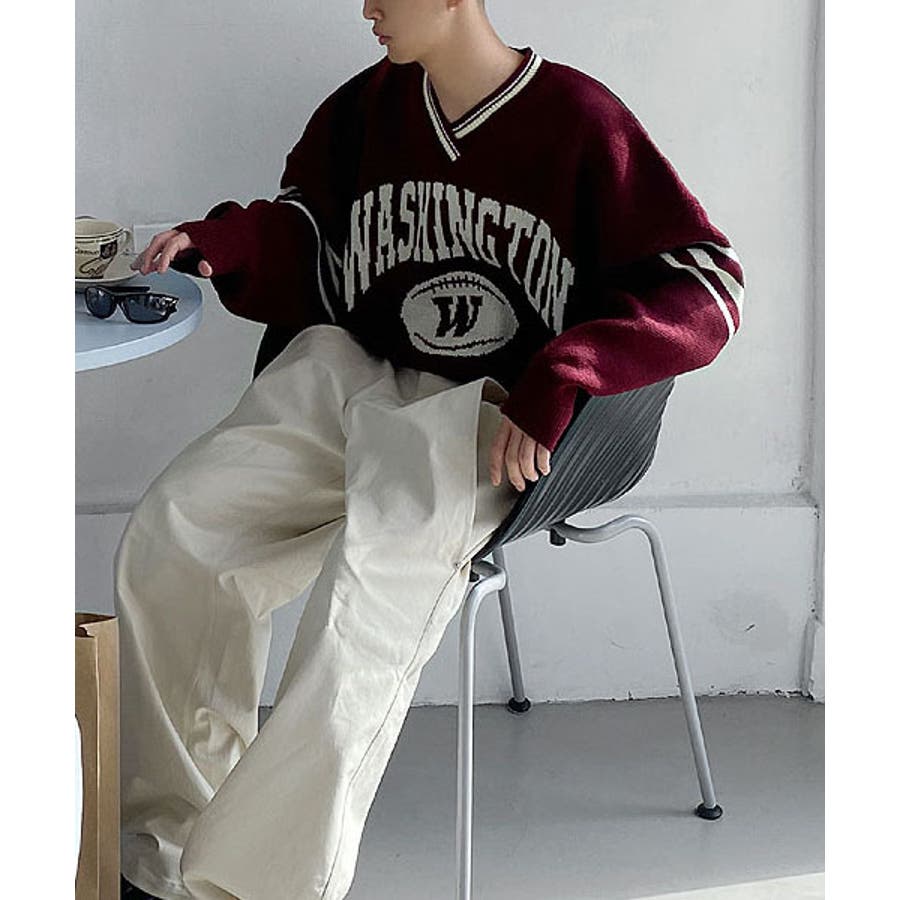 韓国 韓国ファッション トップス ワシントン Vネック ニット プレッピー ストリート カジュアル ライン オーバーサイズ 着回し 秋冬 秋 冬服 冬 春 春服