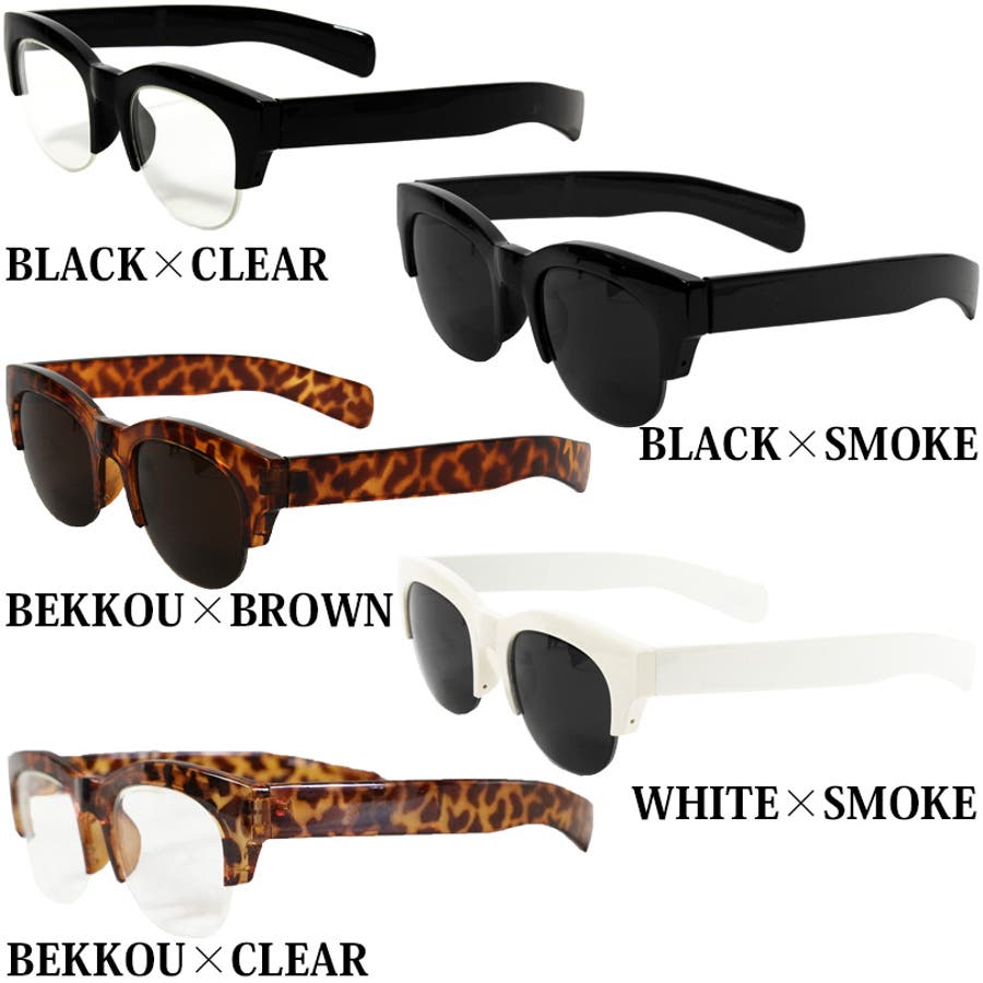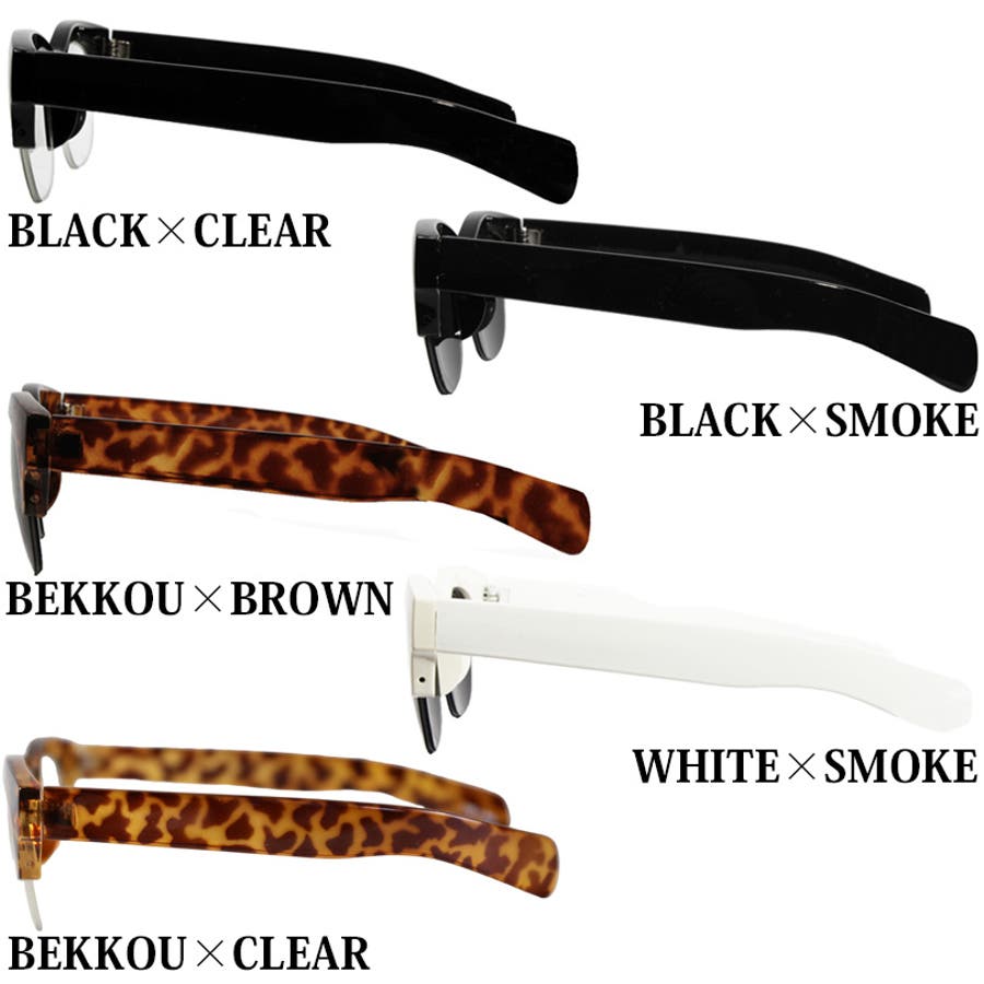 | カラー | ブラック×クリアー / ブラック×スモーク / ベッコウ×ブラウン / ホワイト×スモーク / ベッコウ×クリア |