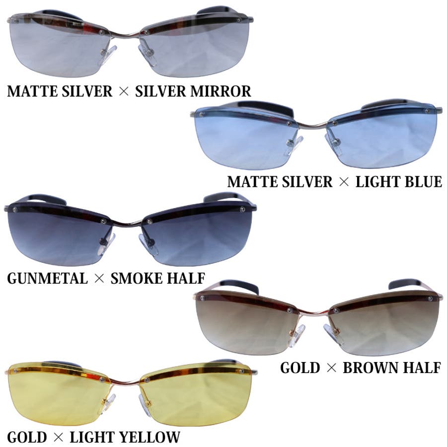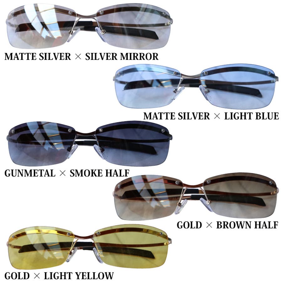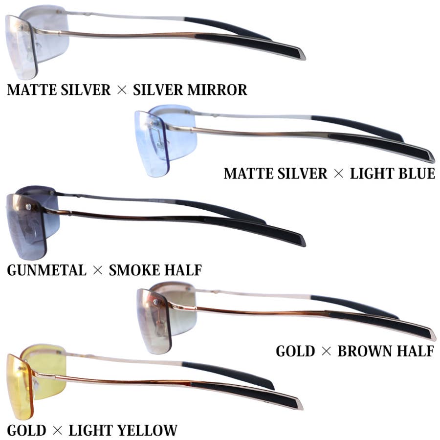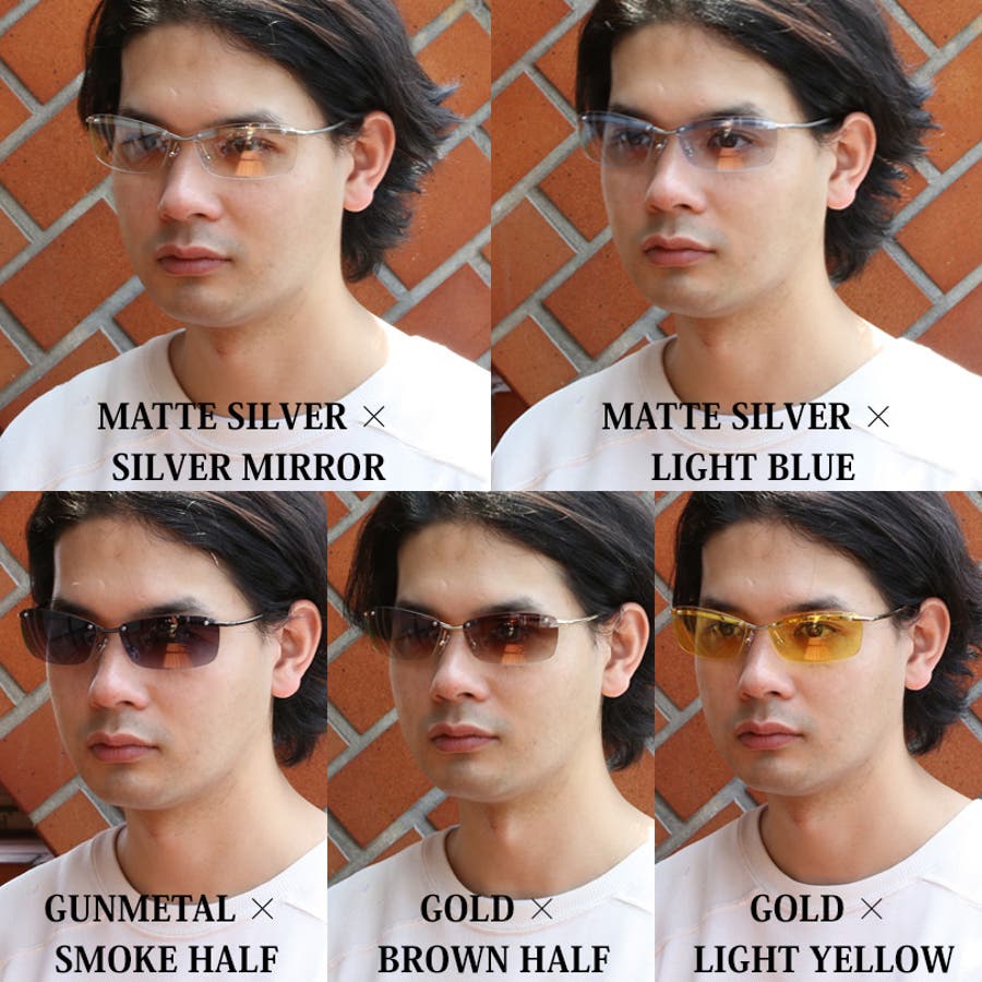 マットシルバー×シルバーミラー マットシルバー×ライトブルー ガンメタル×スモークハーフ ゴールド×ブラウンハーフ ゴールド×ライトイエロー