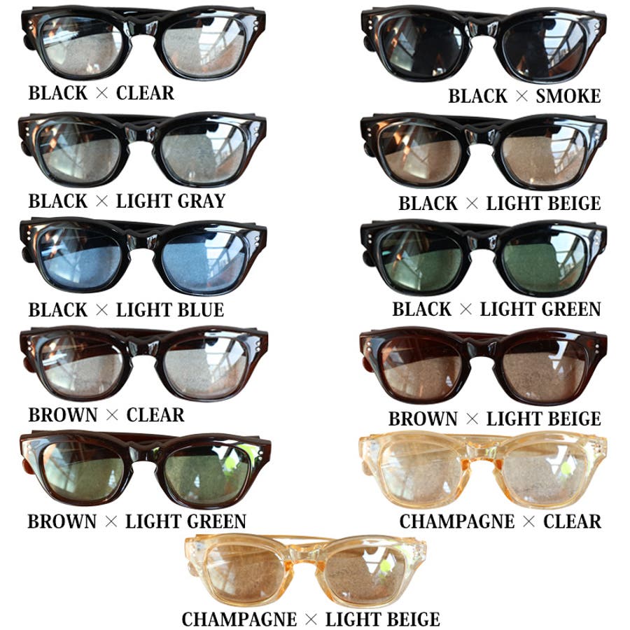 カラー | ブラック×クリア / ブラック×スモーク / ブラック×ライトグレー / ブラック×ライトベージュ / ブラック×ライトブルー / ブラック×ライトグリーン / ブラウン×クリア / ブラウン×ライトベージュ / ブラウン×ライトグリーン / シャンパン×クリア / シャンパン×ライトベージュ |